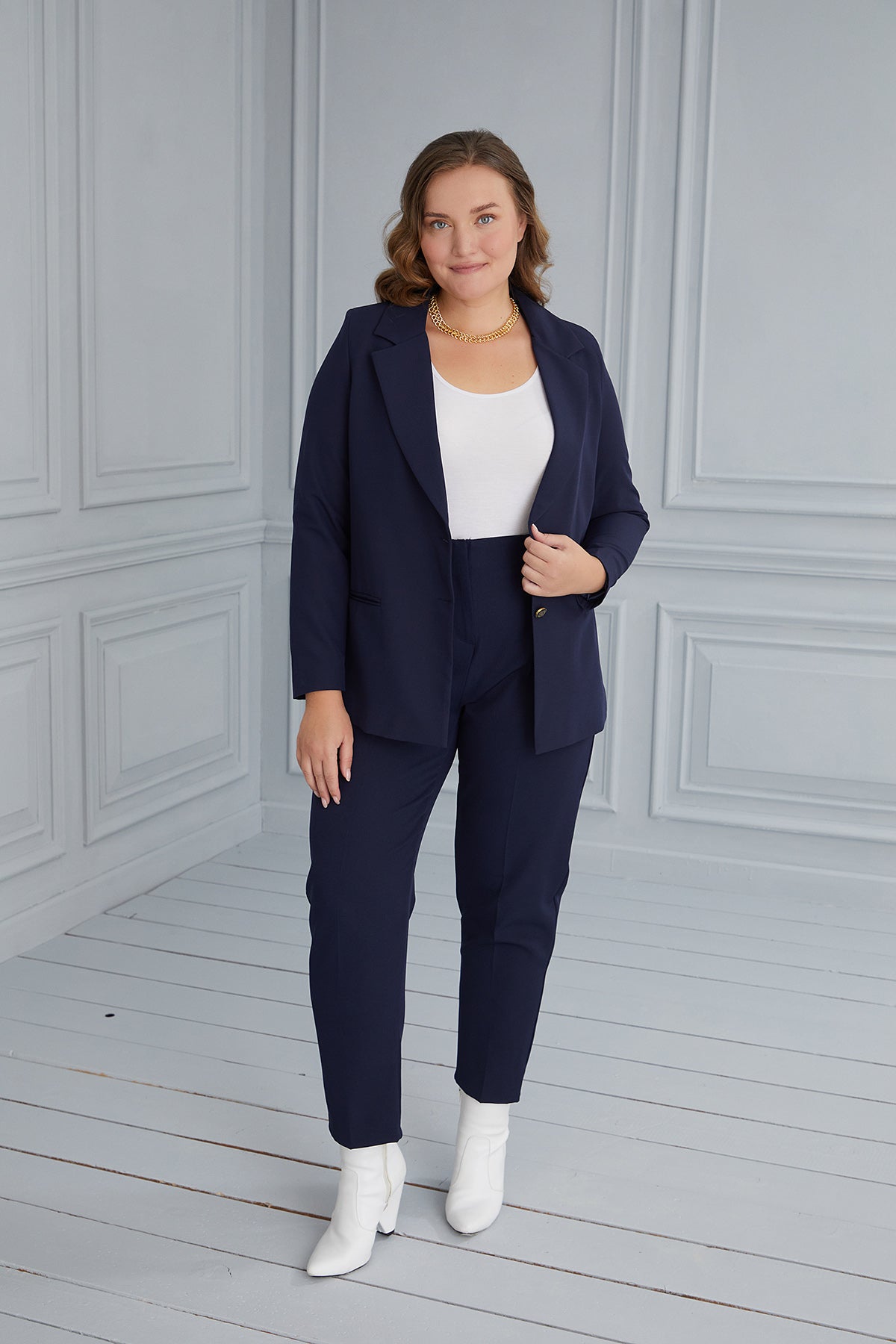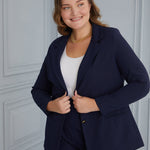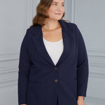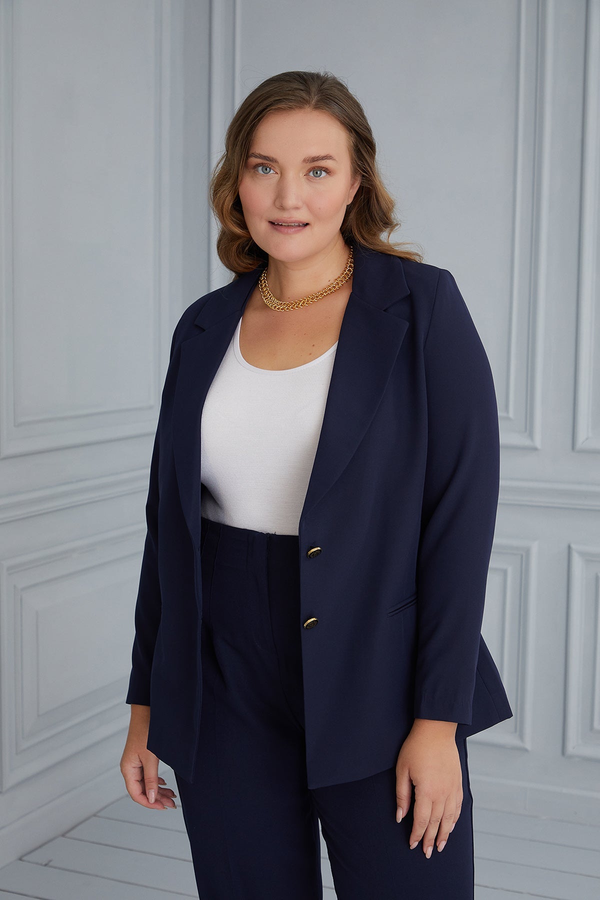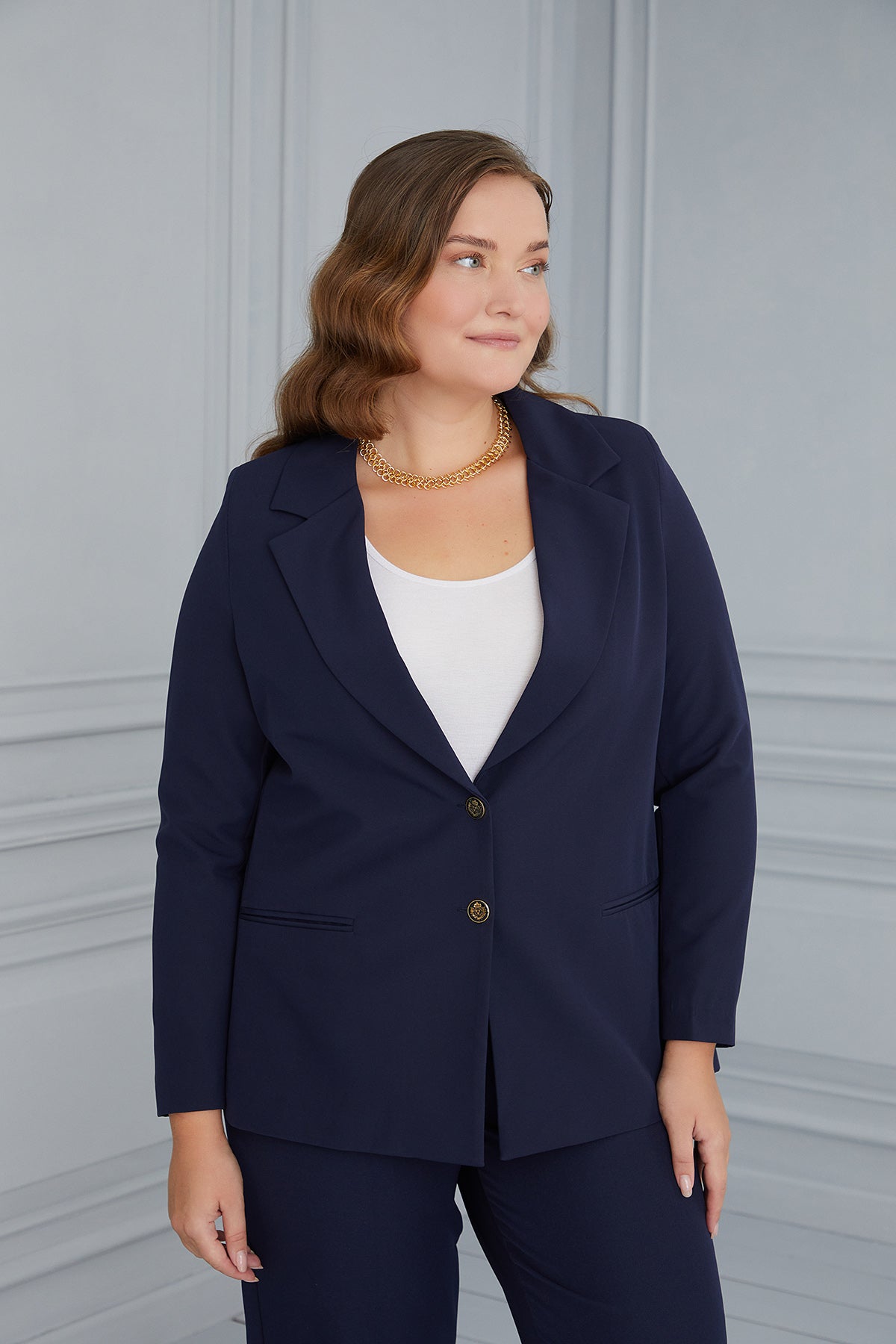 Κομψό γυναικείο σακάκι με φόδρα σε μεγάλα μεγέθη - Σκούρο Μπλε