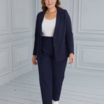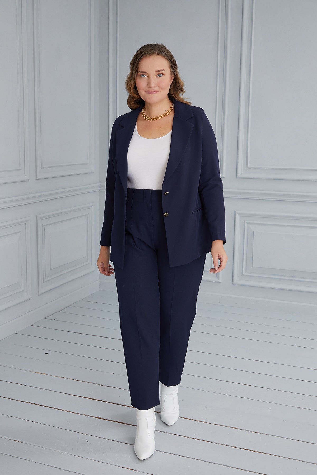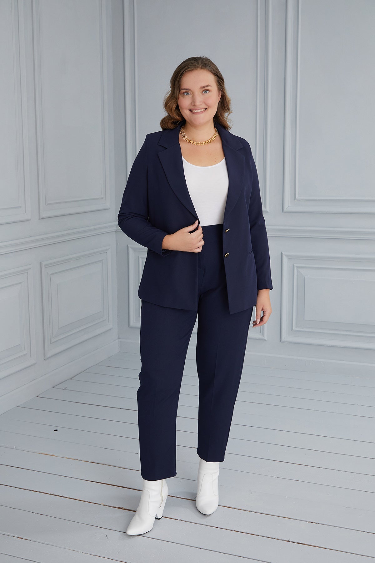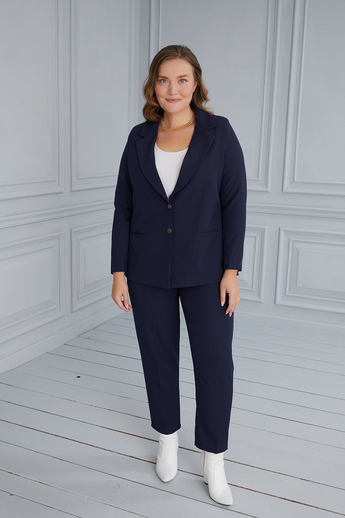 Κομψό γυναικείο σακάκι με φόδρα σε μεγάλα μεγέθη - Σκούρο Μπλε