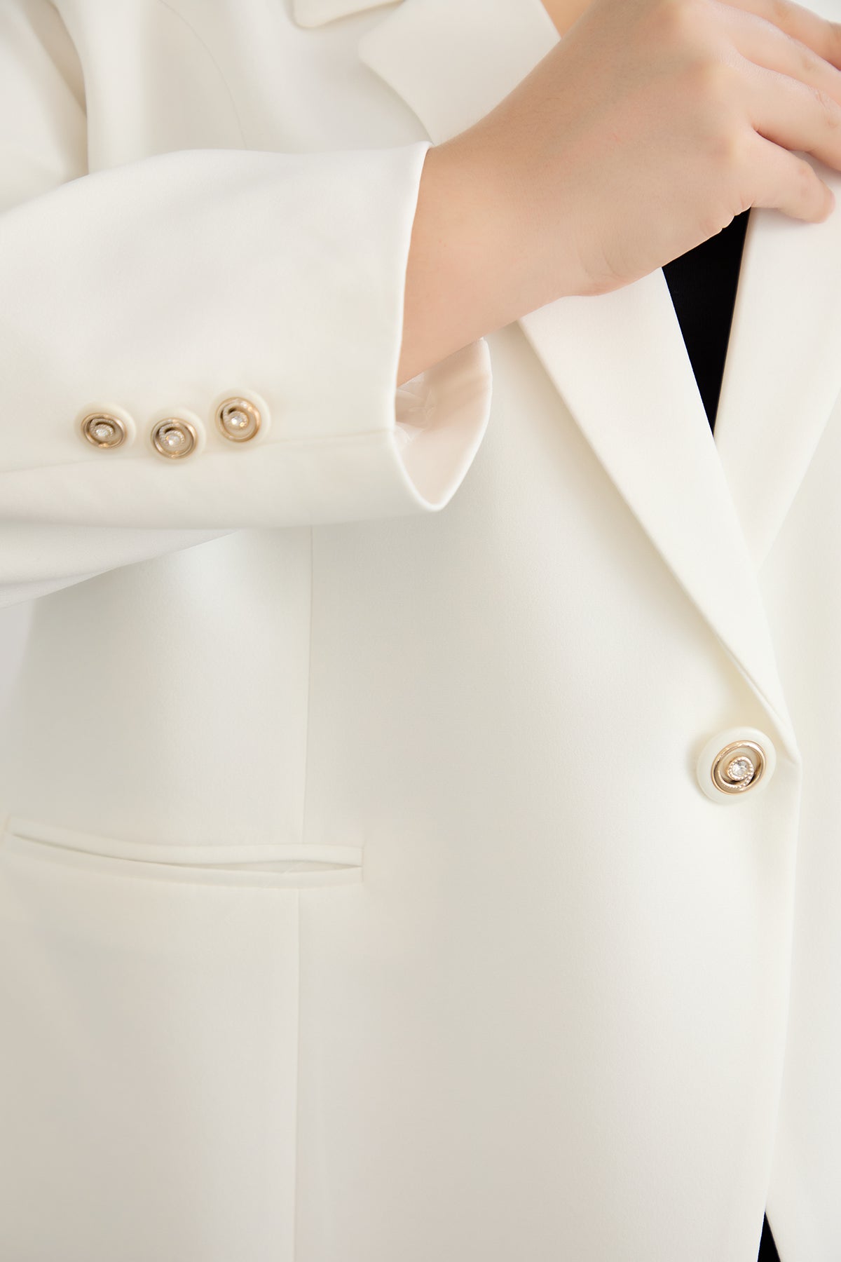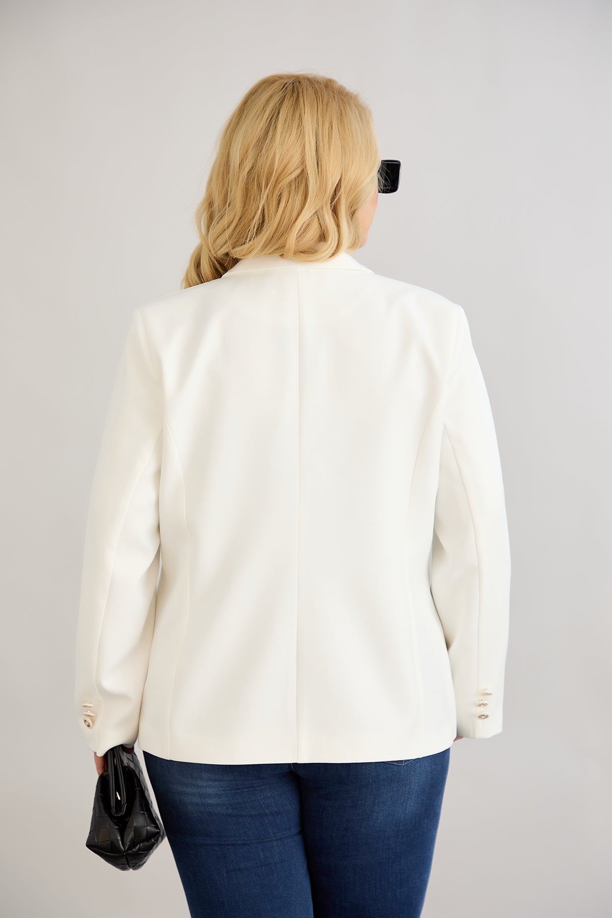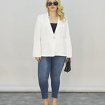 Κομψό και μοντέρνο σακάκι με φόδρα  και ένα κουμπί σε μεγάλα μεγέθη- Άσπρο