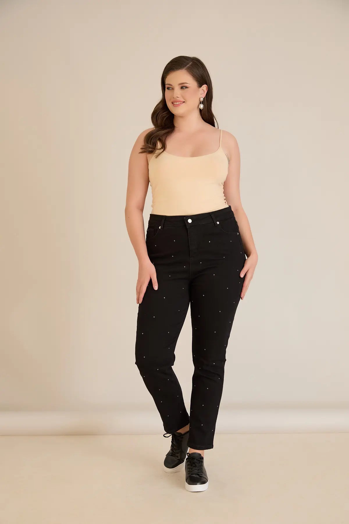 Σικ τζιν με στρασάκια και ελαστική μέση σε μεγάλα μεγέθη