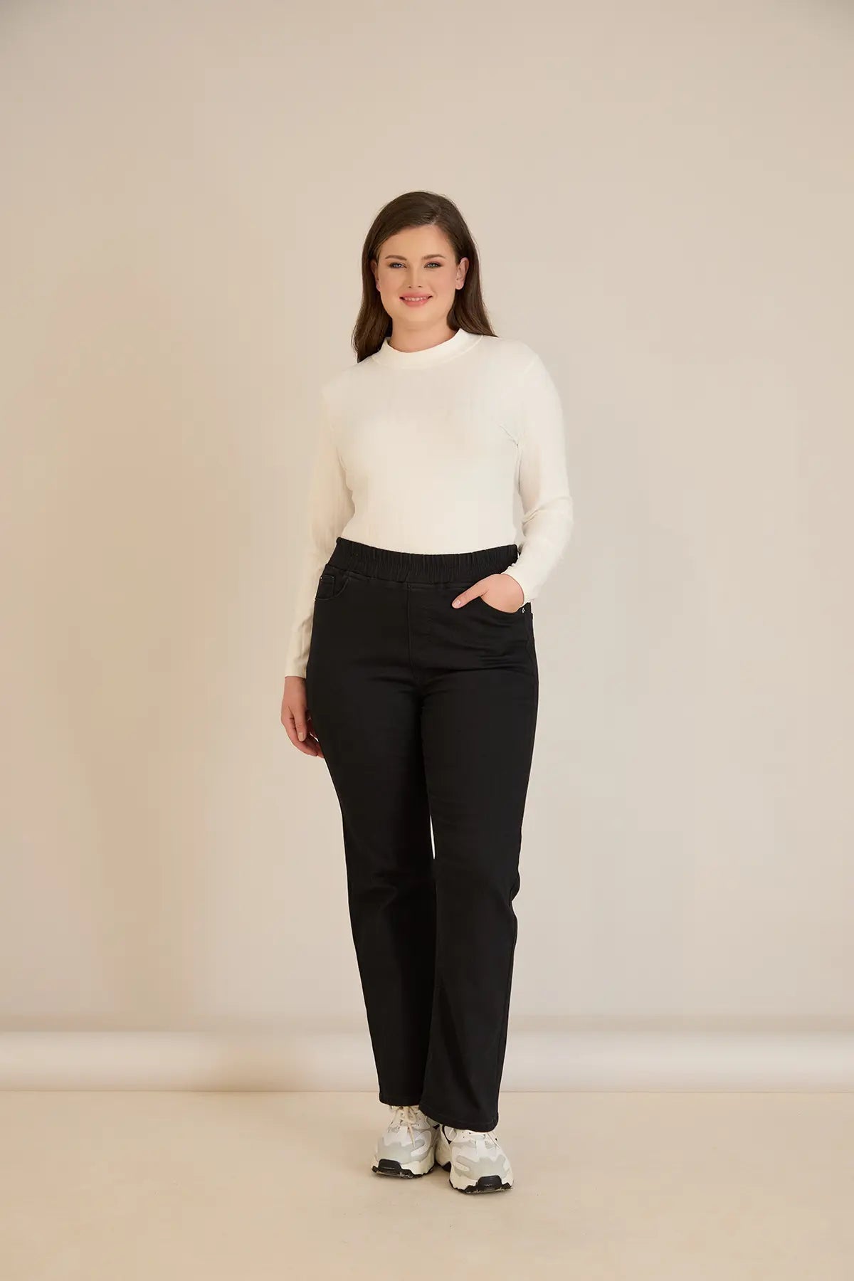 Bootcut τζιν με ελαστική μέση σε μεγάλα μεγέθη - Μαύρο