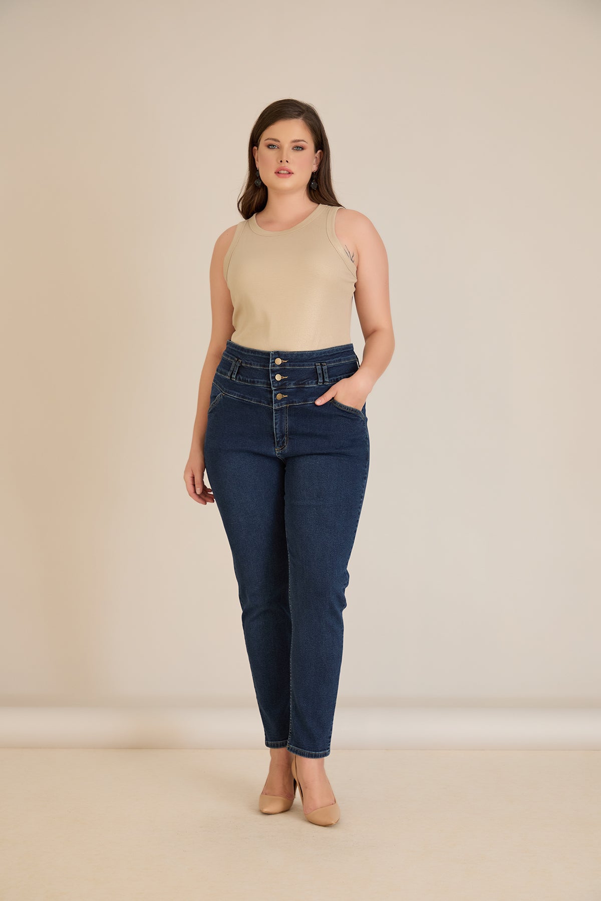 Ψηλόμεσο ελαστικό τζιν με κουμπιά – Ιντίγκο