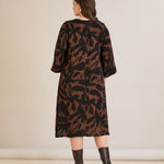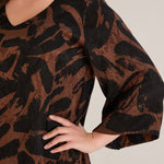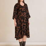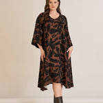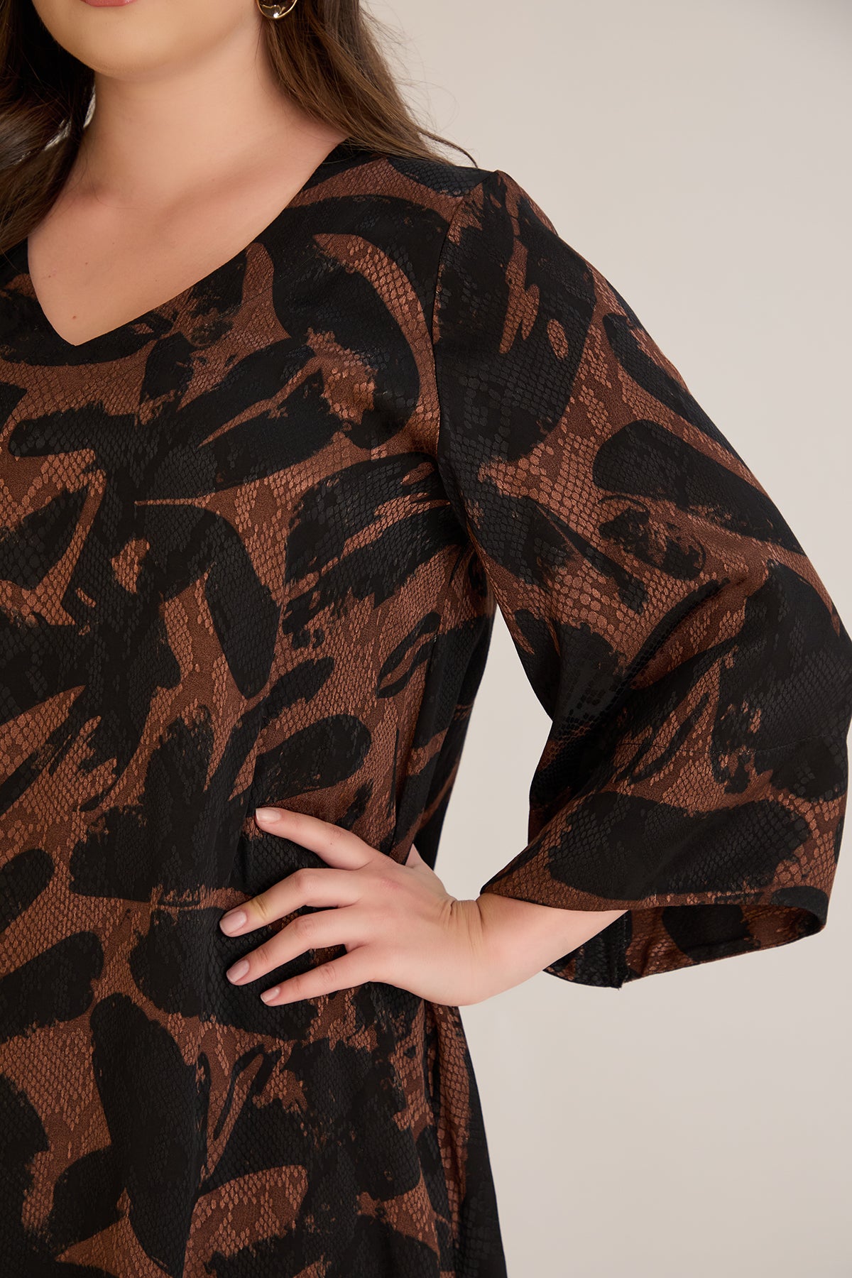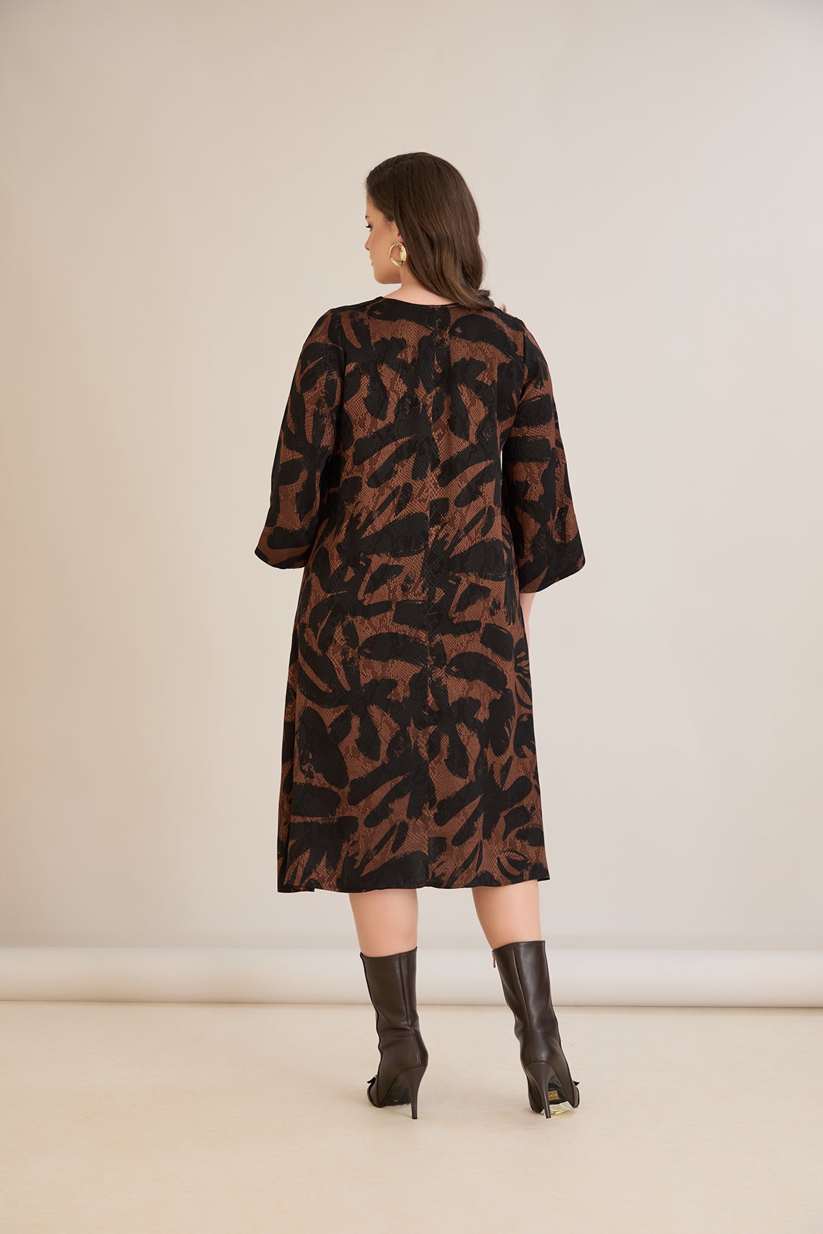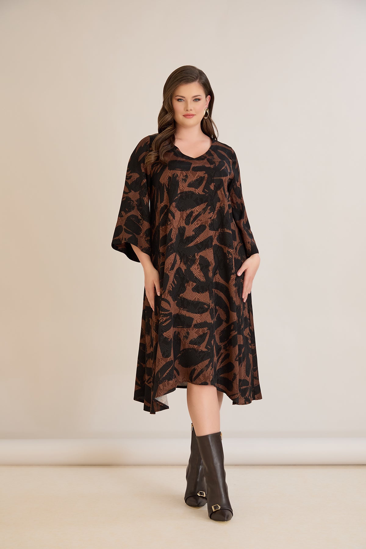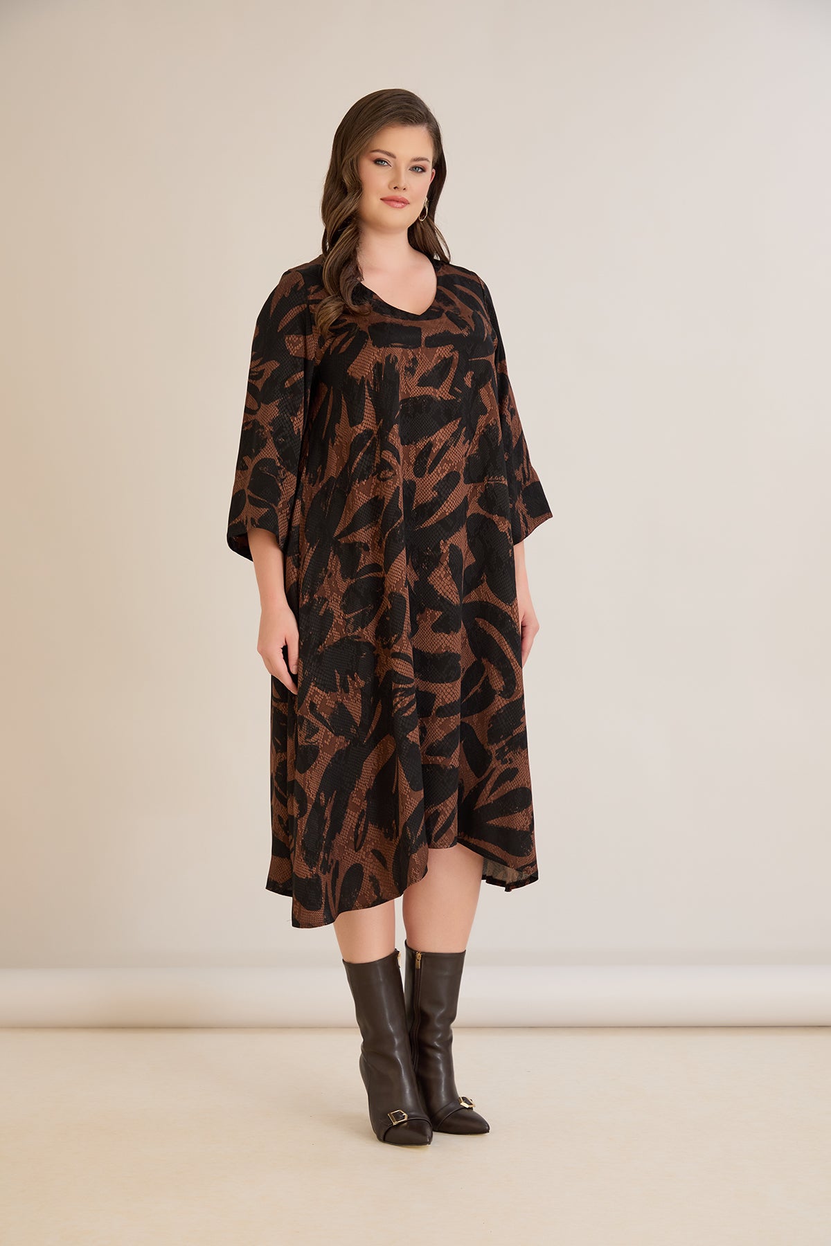 Φόρεμα σε γραμμή Α από σατινέ βισκόζη σε Μόκα /Μαύρο χρώμα σε μεγάλα μεγέθη