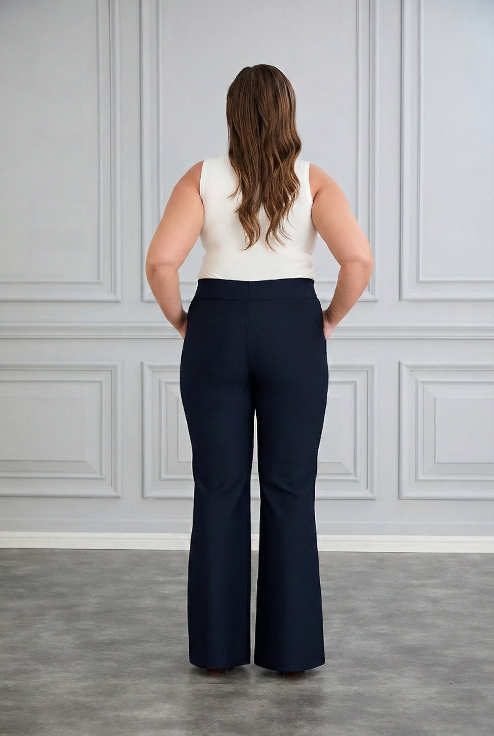 Bootcut παντελόνι διαμόρφωση σώματος Borisa σε χρώμα Μπλε σκούρο σε μεγάλα μεγέθη