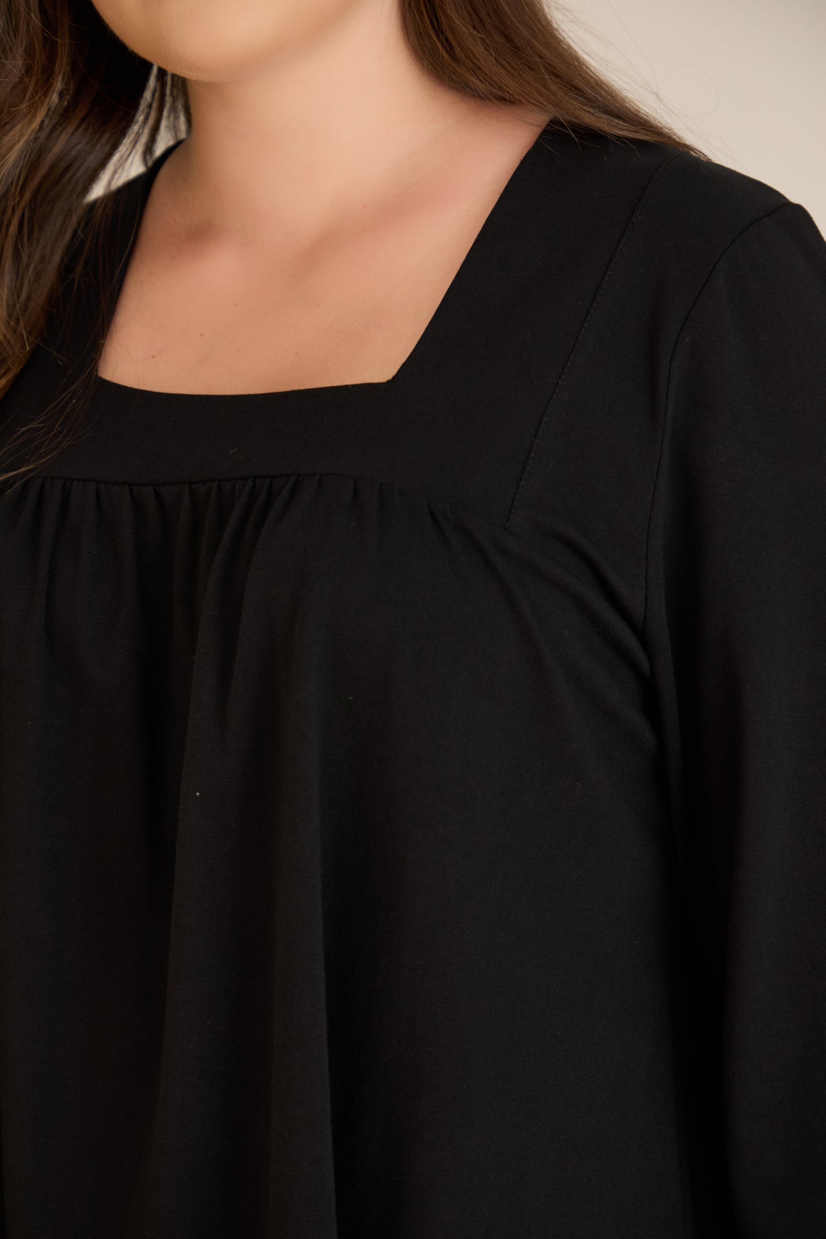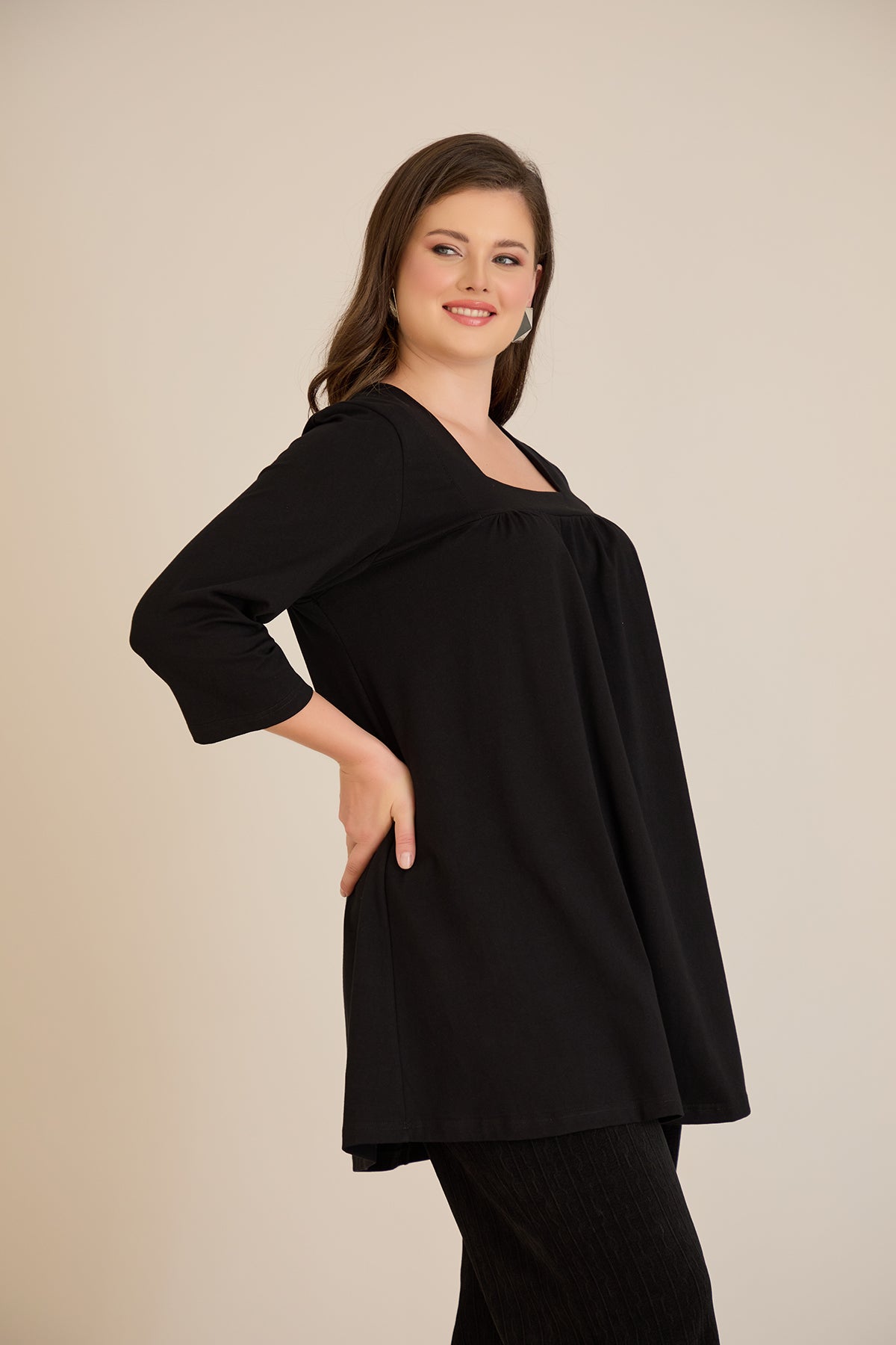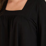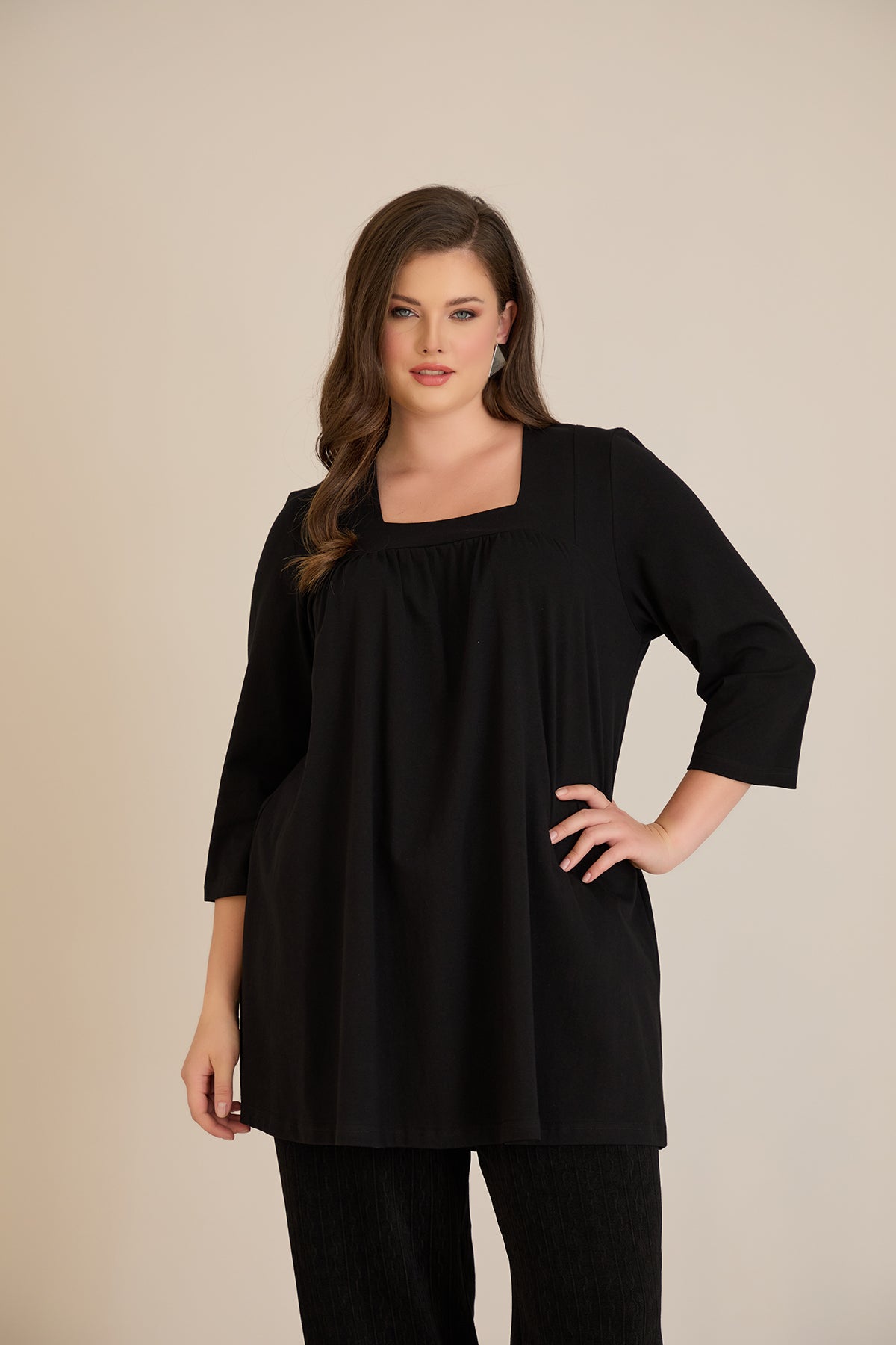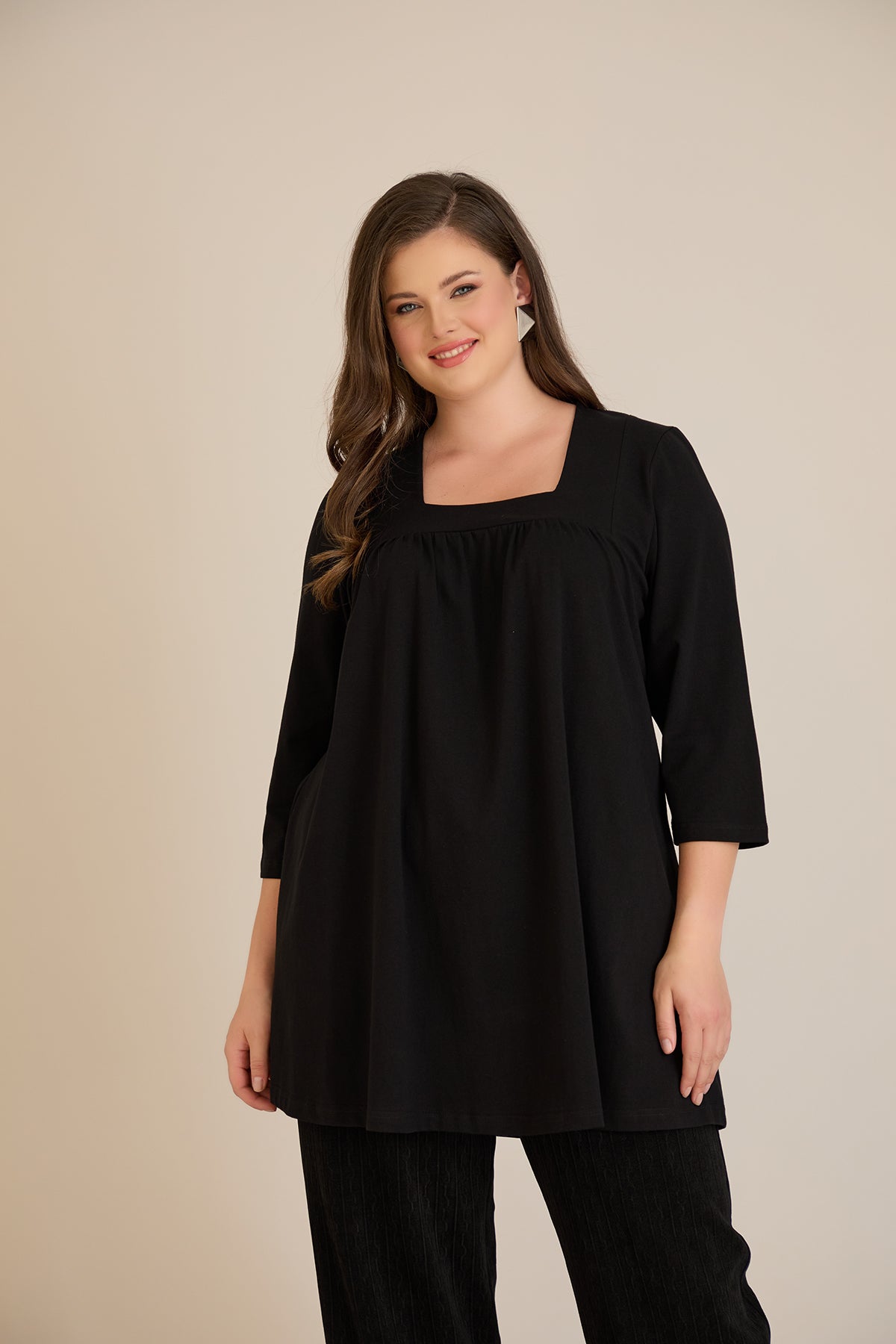 Βαμβακερή τουνίκ με σούρα και τετράγωνο ντεκολτέ σε Μαύρο χρώμα σε μεγάλα μεγέθη