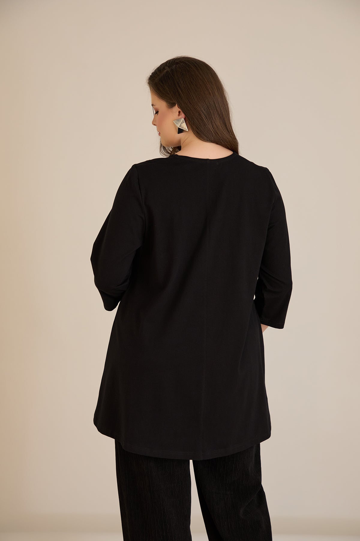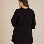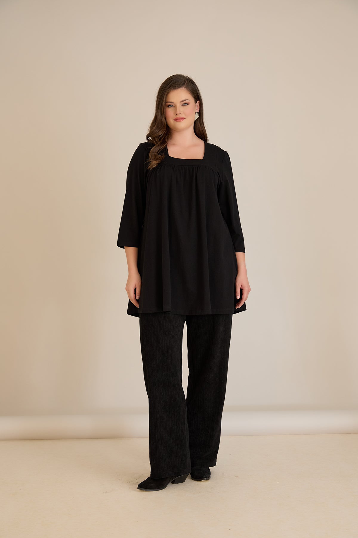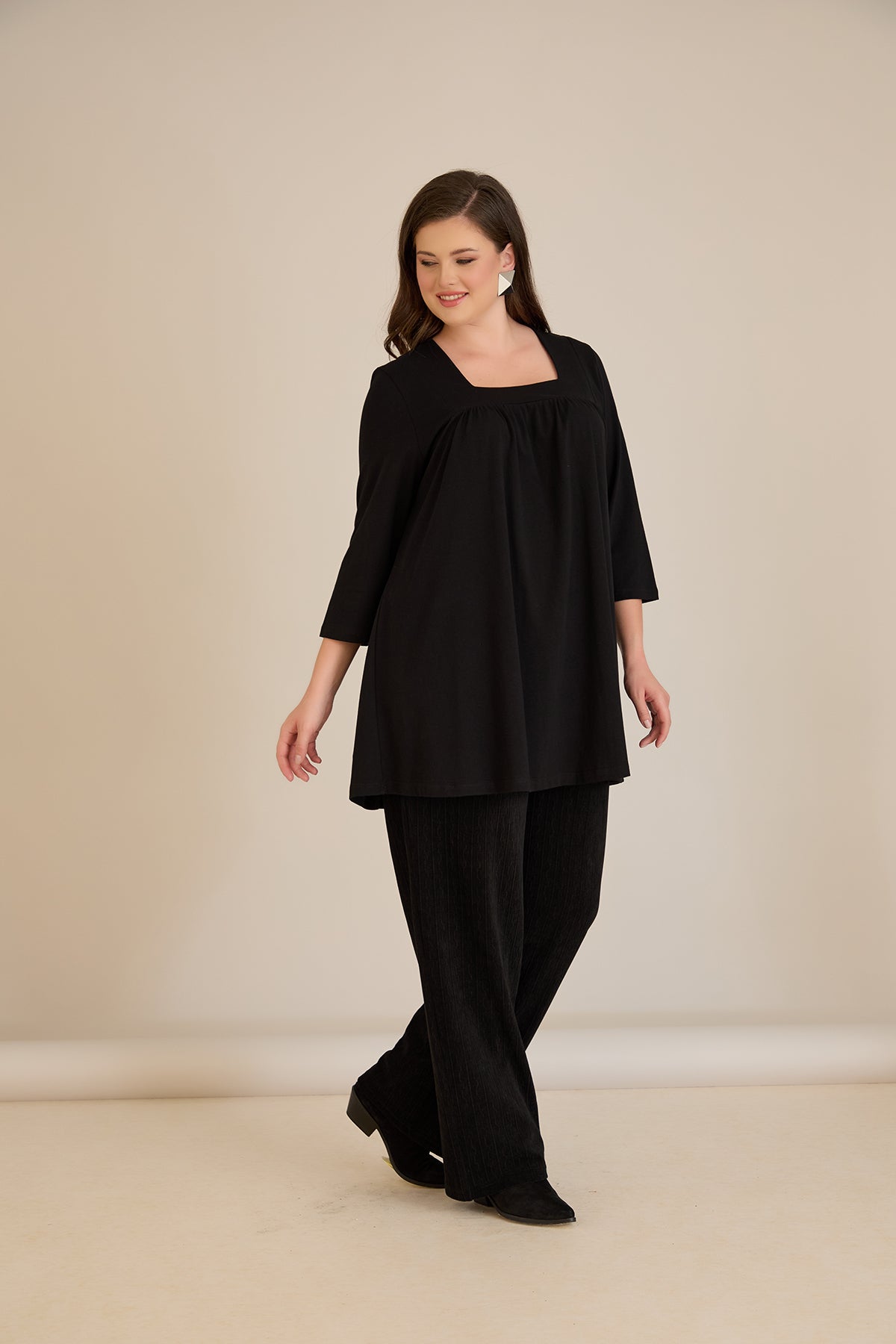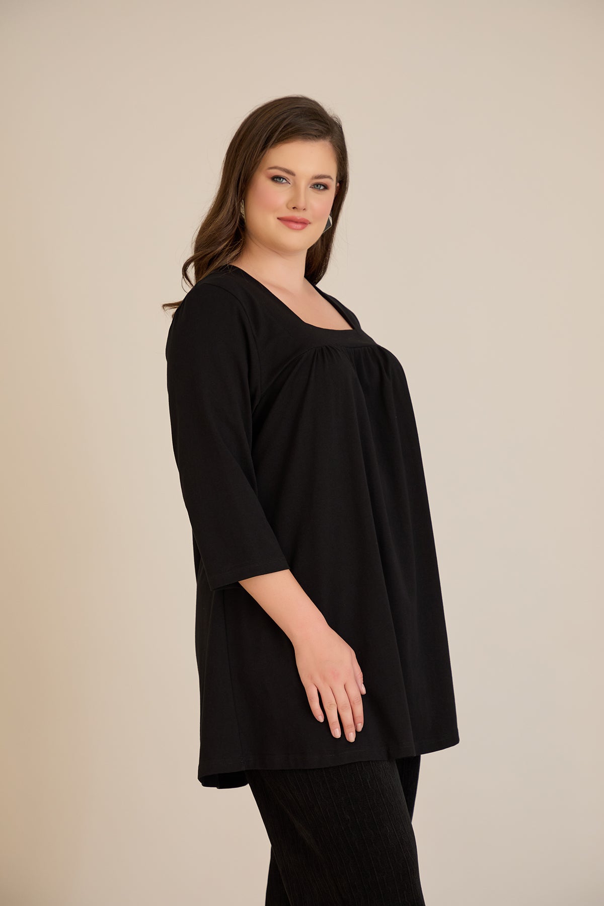 Βαμβακερή τουνίκ με σούρα και τετράγωνο ντεκολτέ σε Μαύρο χρώμα σε μεγάλα μεγέθη