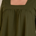 Βαμβακερή τουνίκ με σούρα και τετράγωνο ντεκολτέ -Χακί