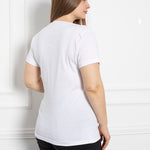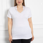 Βαμβακερή μπλούζα με δαντέλα σε μεγάλα μεγέθη- Άσπρο