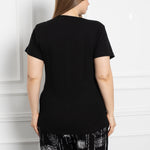 Βαμβακερή μπλούζα με δαντέλα σε μεγάλα μεγέθη- Μαύρο