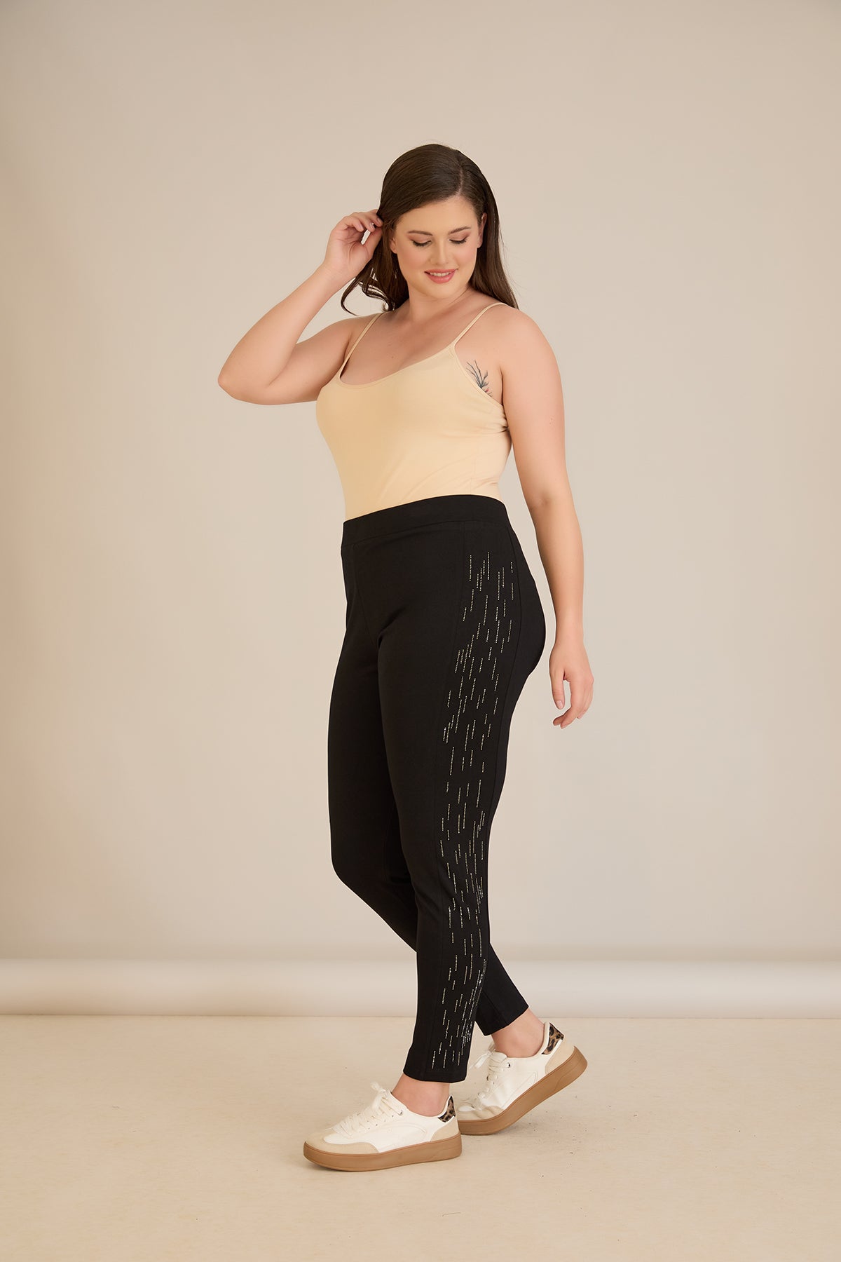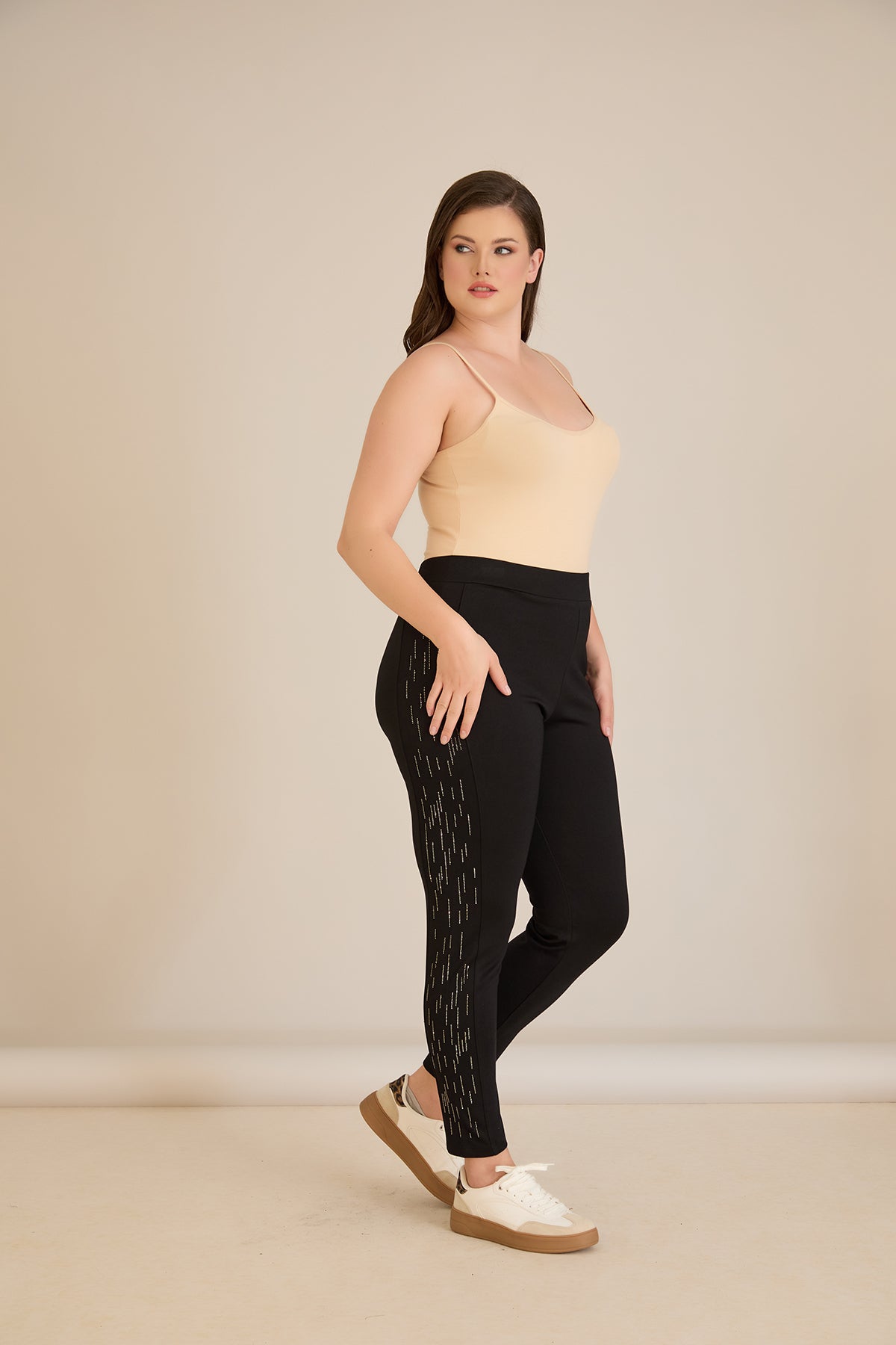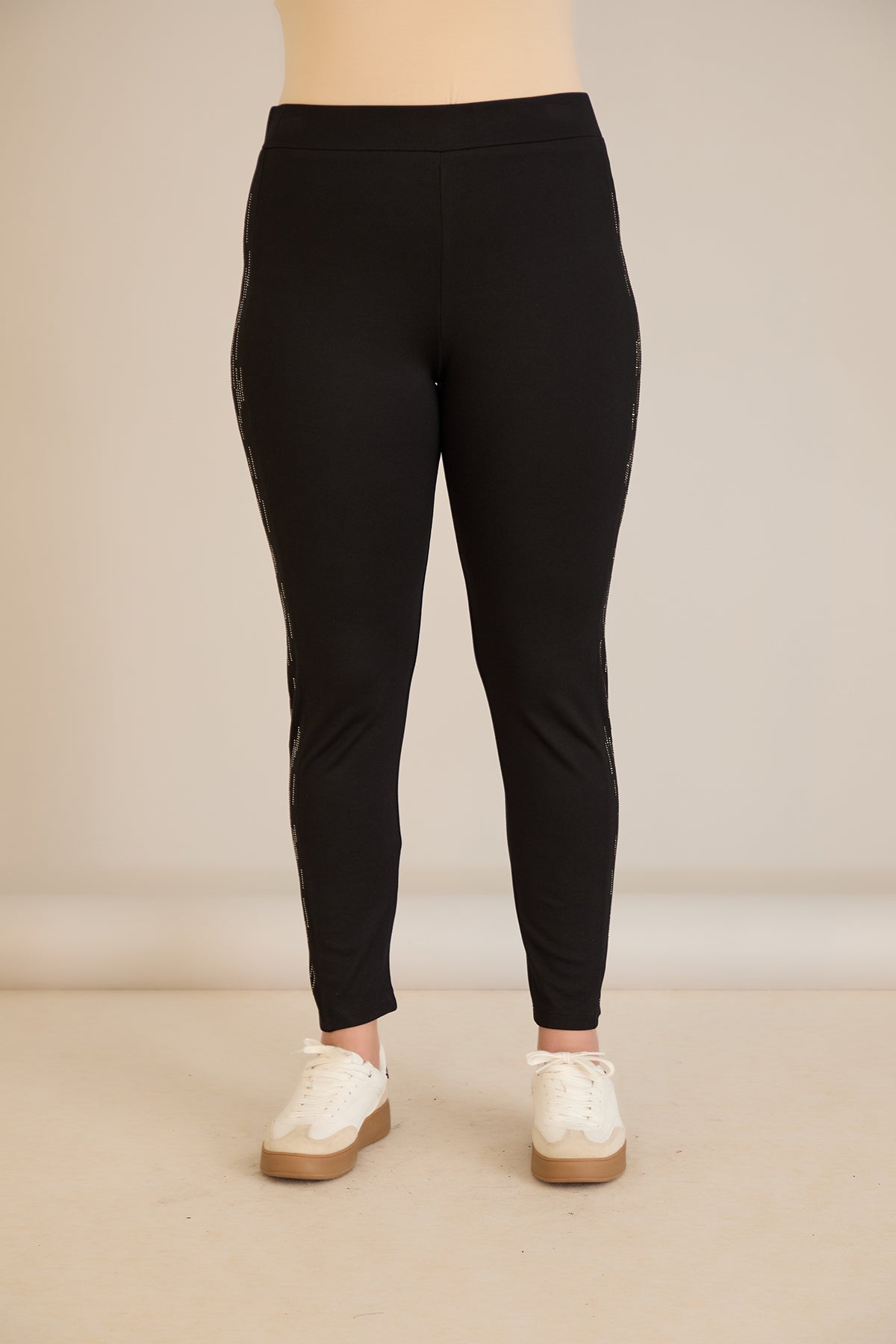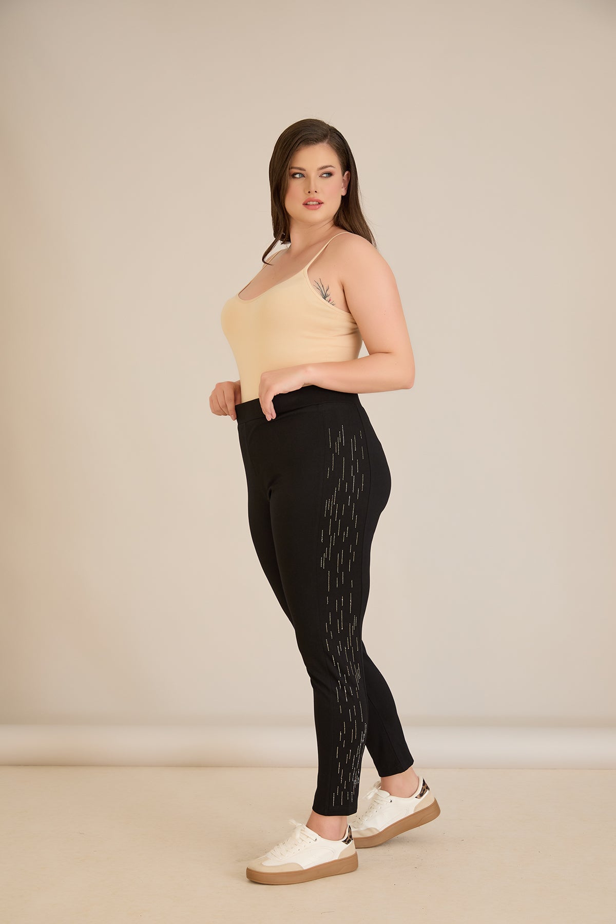 Ελαστικό κολάν με στρασάκια σε μαύρο χρώμα σε μεγάλα μεγέθη