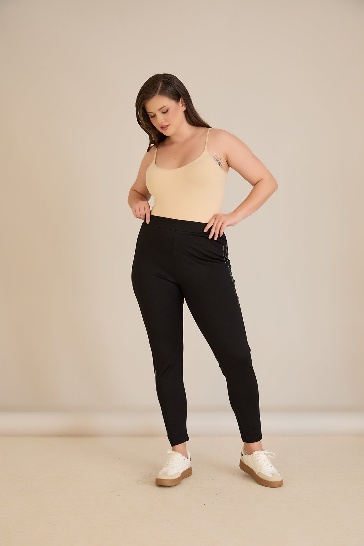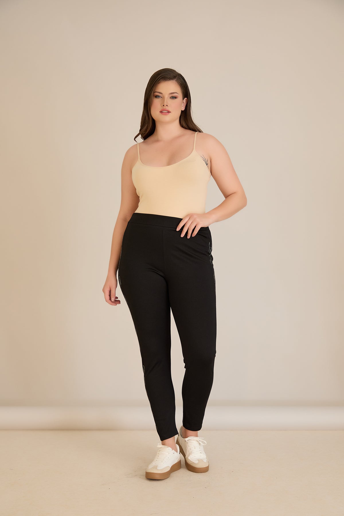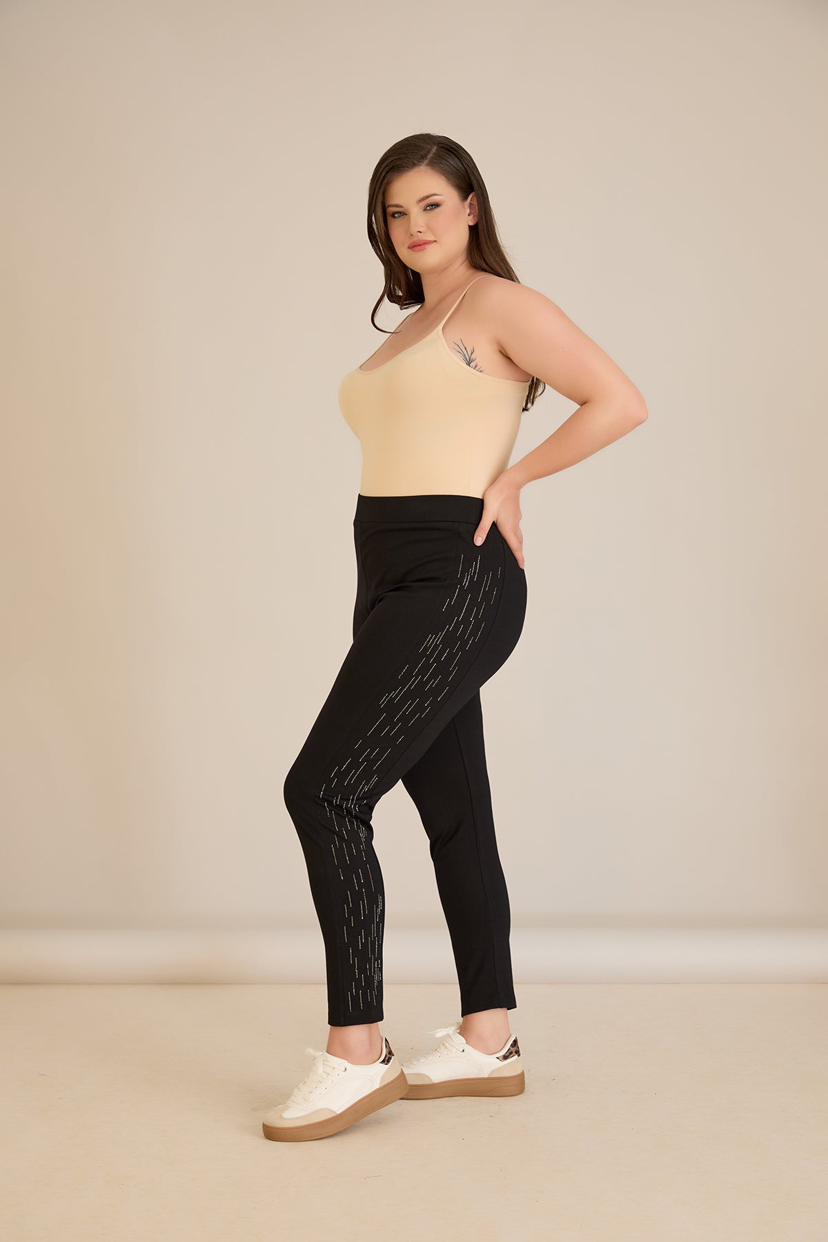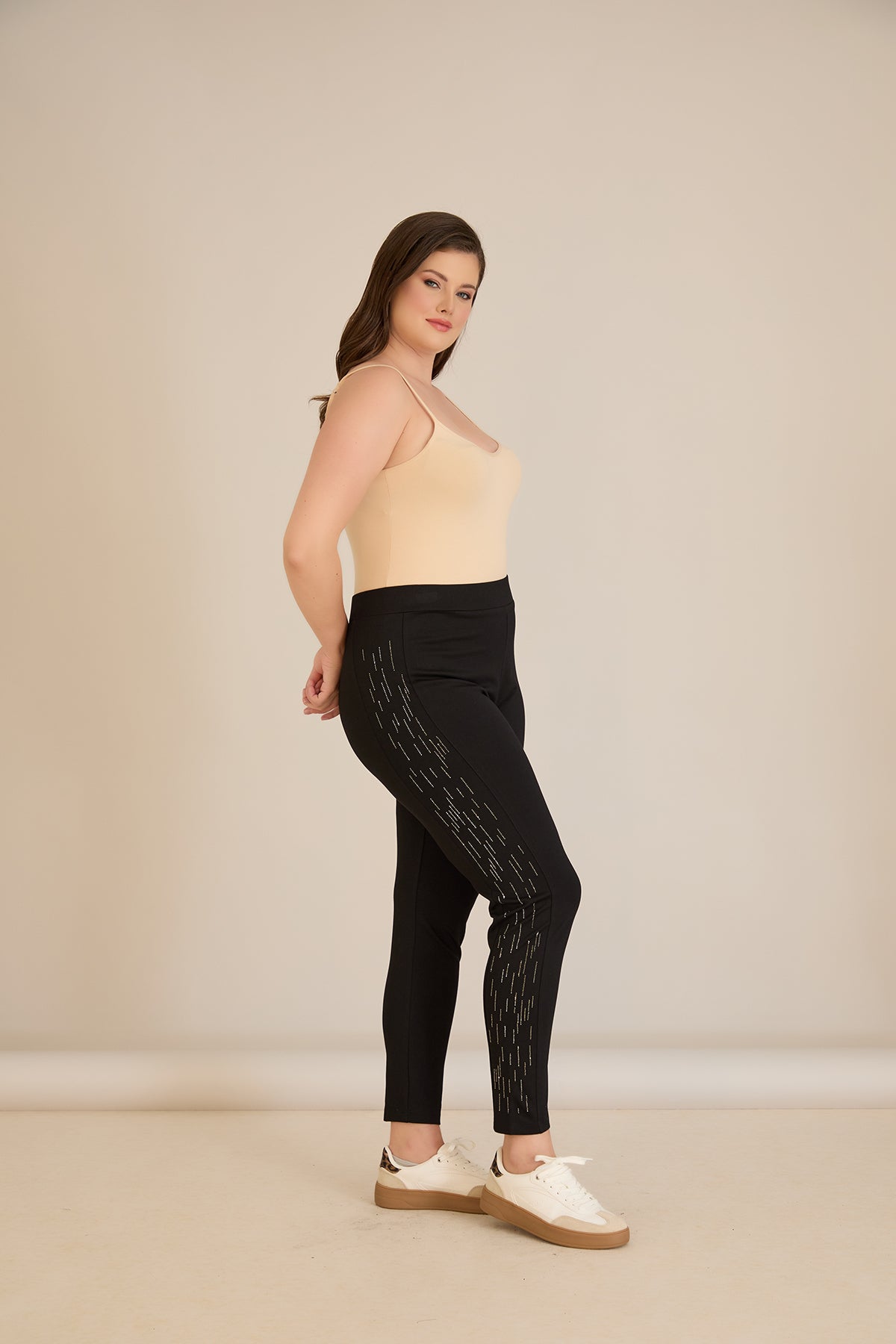 Ελαστικό κολάν με στρασάκια σε μαύρο χρώμα σε μεγάλα μεγέθη