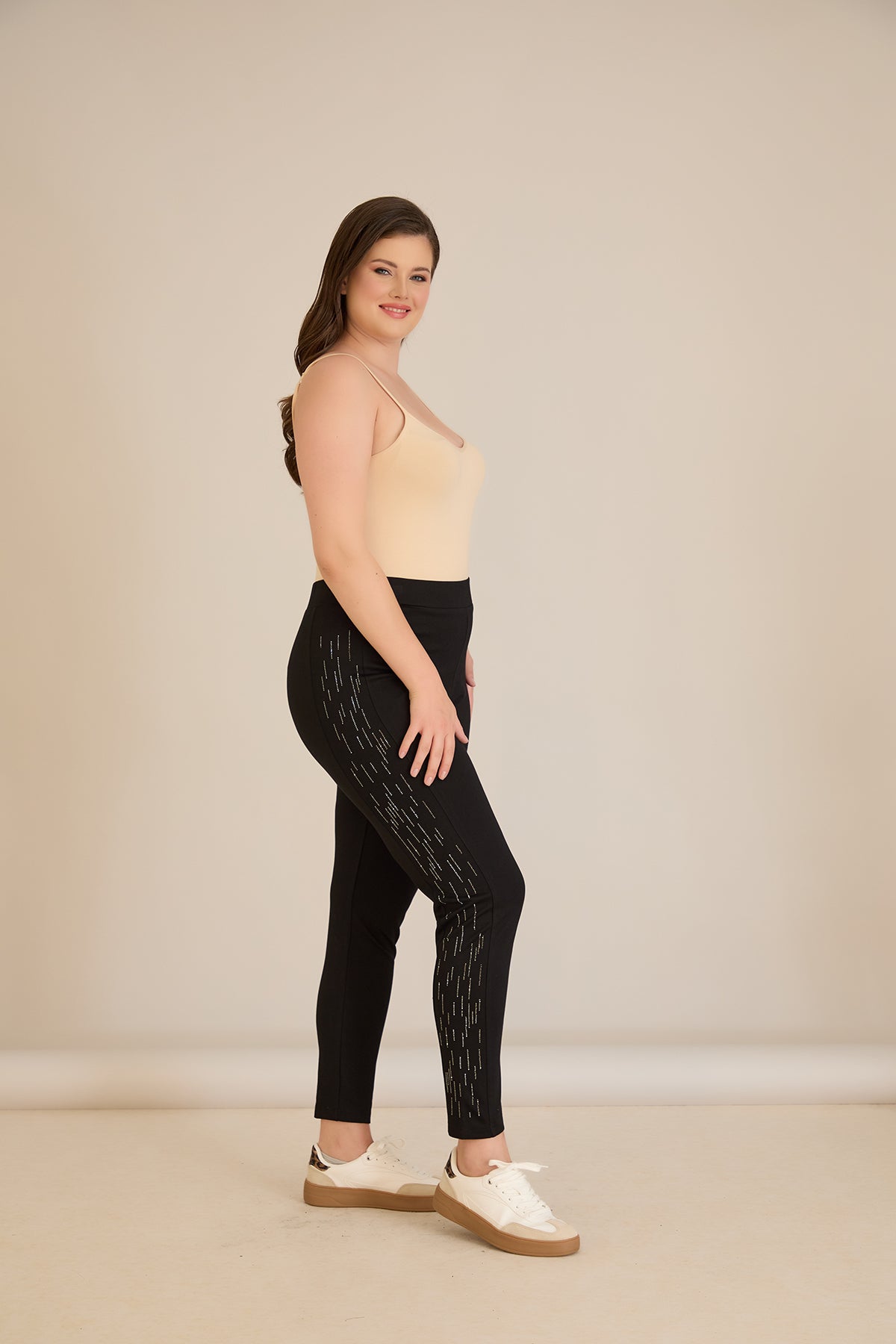 Ελαστικό κολάν με στρασάκια -Μαύρο