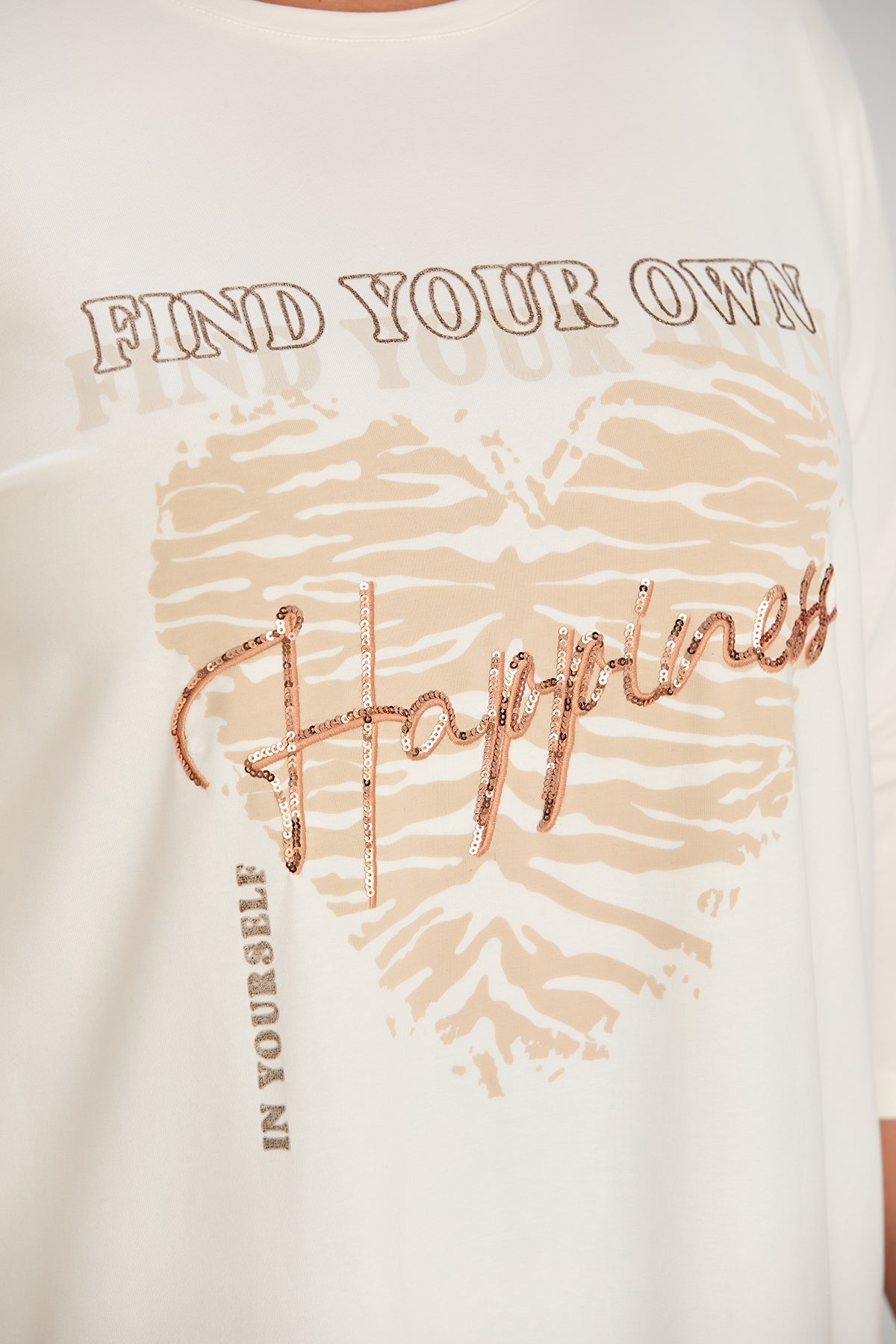 Γυναικείο τουνίκ με στάμπα "Happiness" σε μέγαλα μεγέθη- Εκρού
