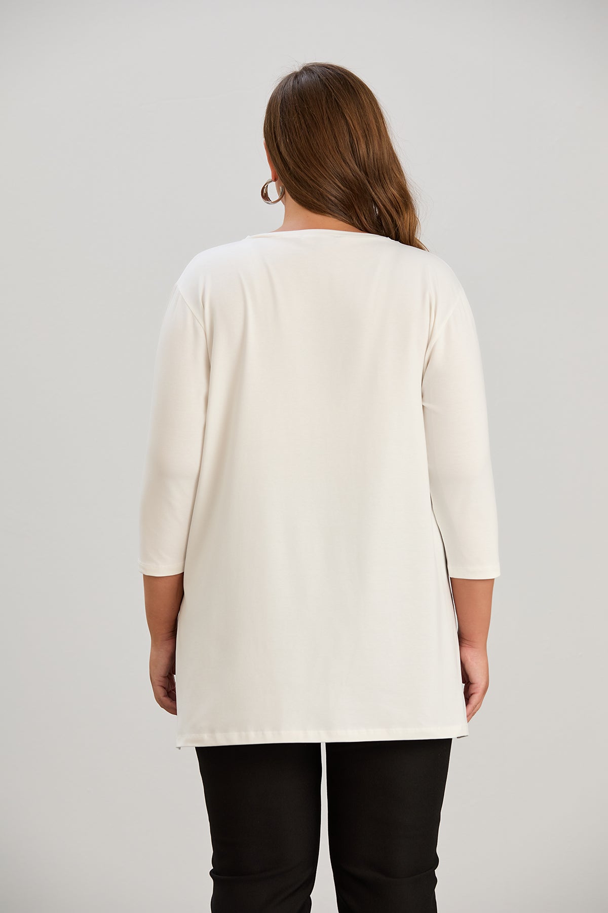 Γυναικείο τουνίκ με στάμπα, ένας συνδυασμός άνεσης και μοντέρνο στυλ. Άνετο τουνίκ από ελαστικό, βαμβακερό ύφασμα που παρέχει ελευθερία κινήσεων και άνεση όλη την ημέρα. Η σχεδίαση διαθέτει πλαϊνά σκισίματα και μοντέρνα στάμπα "Ανακαλύψτε την ευτυχία στον εαυτό σας ", καθιστώντας την ιδανική για την καθημερινότητα. Διατίθεται σε μεγάλα μεγέθη,  κατάληλη για διαφορετικούς σωματότυπους.