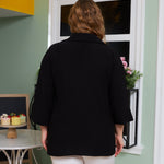 Κομψή μαύρη μπλούζα με καρφίτσα σε μεγάλα μεγέθη