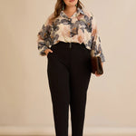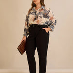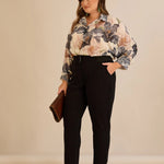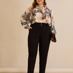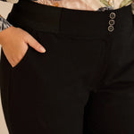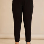 Κομψό βαμβακερό παντελόνι με κλασική γραμμή σε μαύρο χρώμα σε μεγάλα μεγέθη
