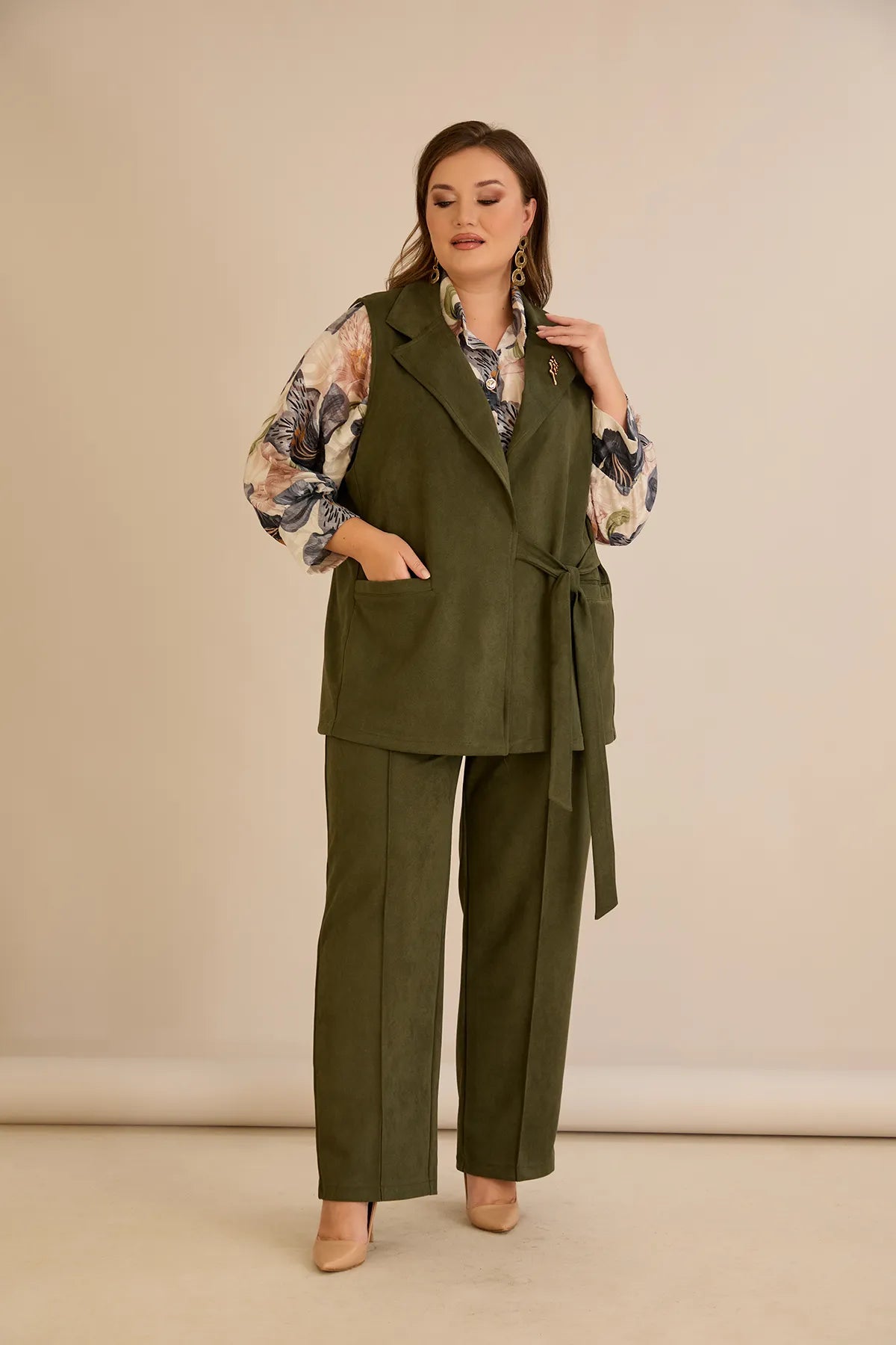 Κομψό γιλέκο με ρεβέρ και καρφίτσα σε Χακί χρώμα σε μεγάλα μεγέθη