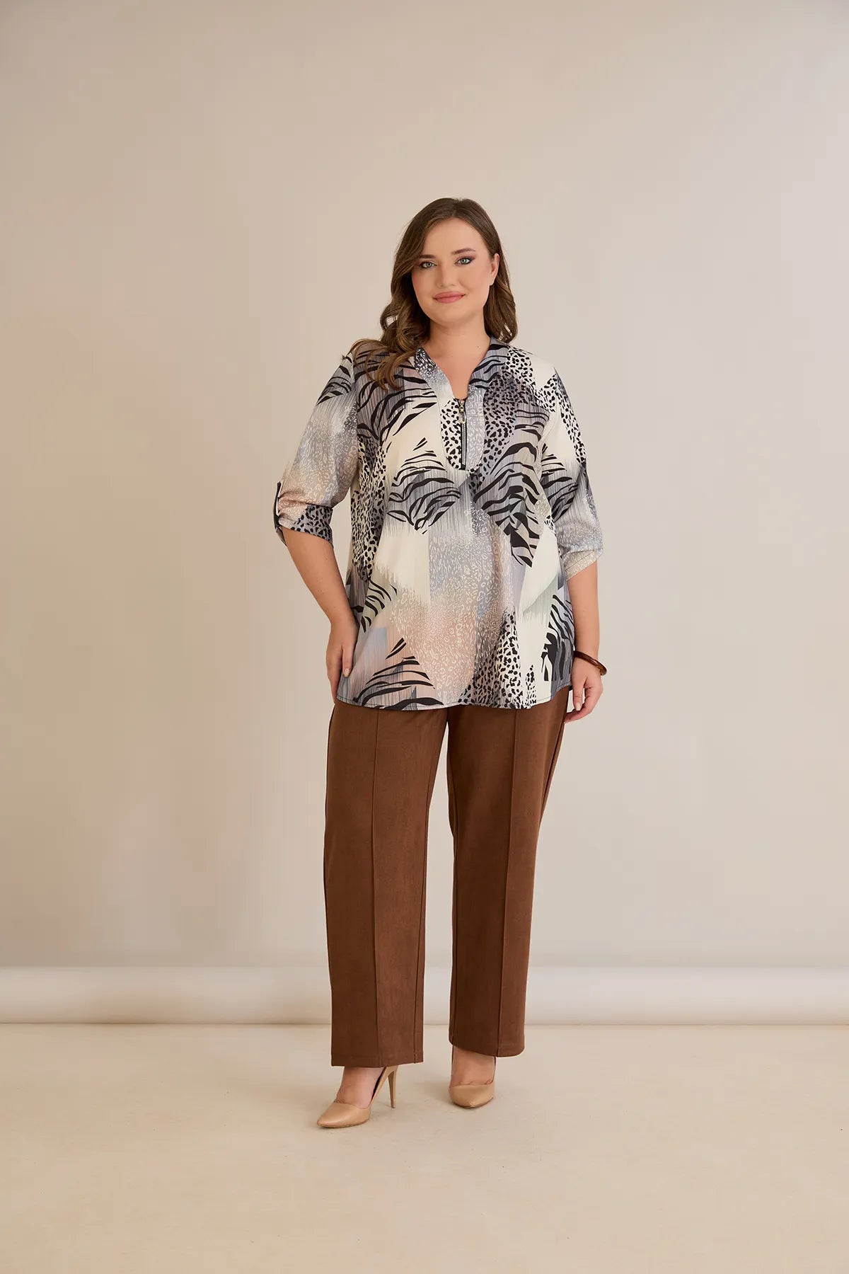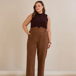 Κομψό παντελόνι με μπροστινή ραφή και ψηλή μέση σε καφέ χρώμα σε μεγάλα μεγέθη