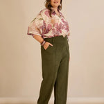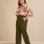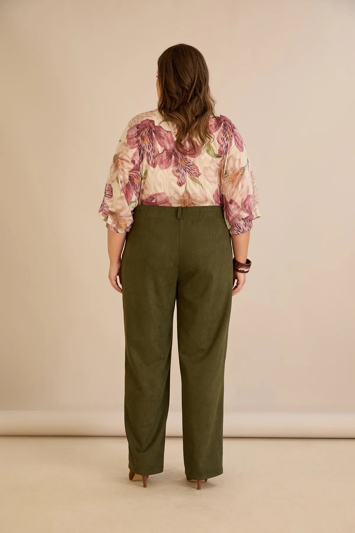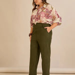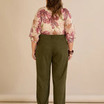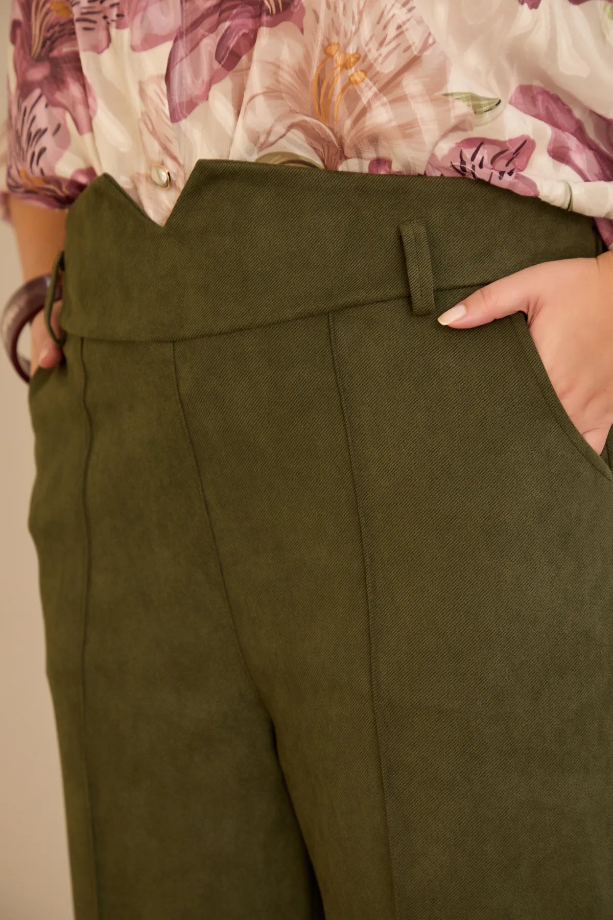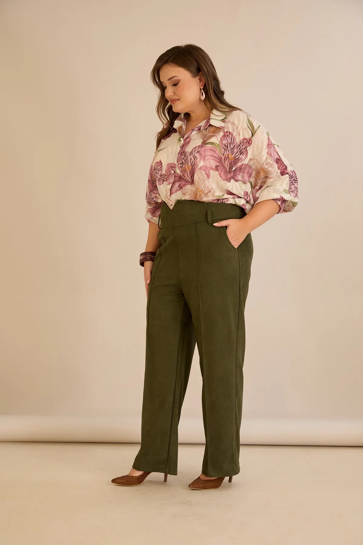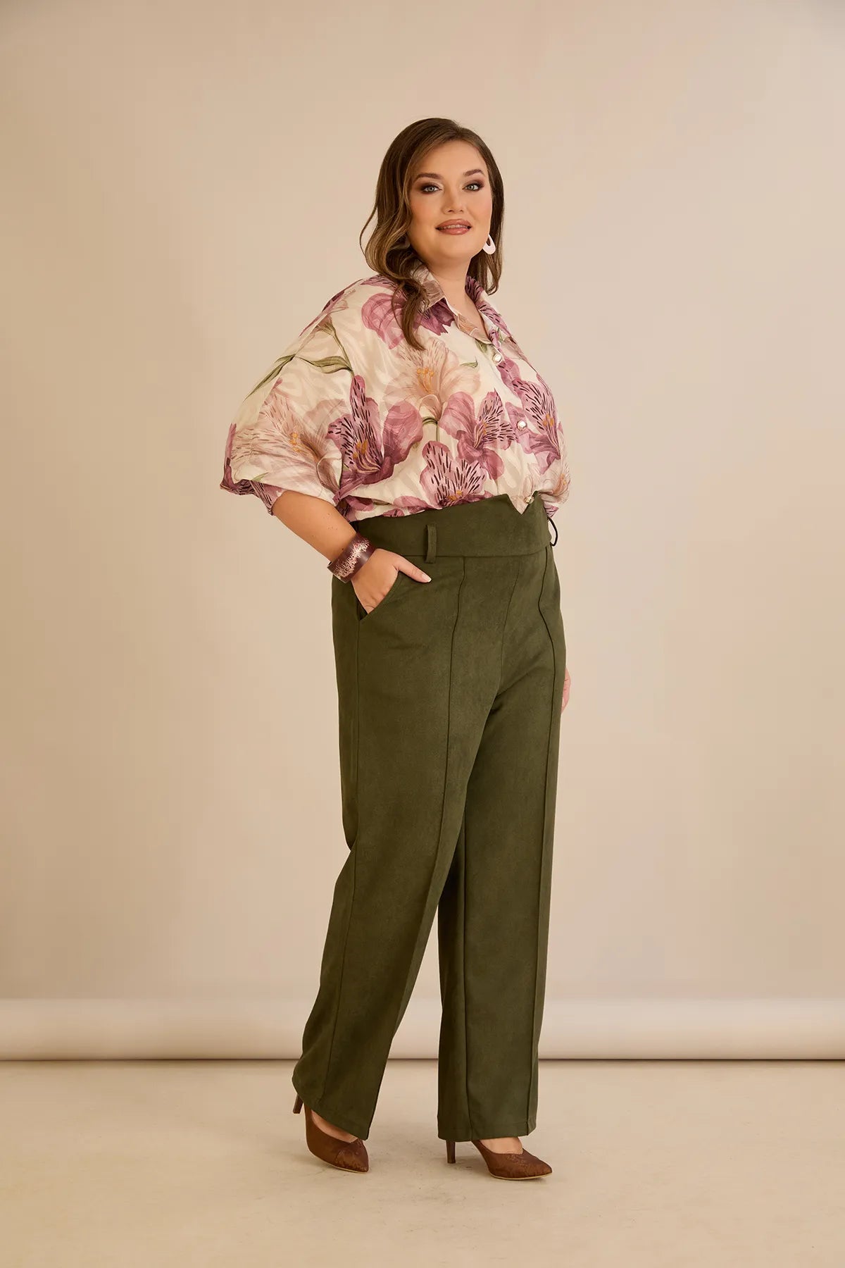 Κομψό παντελόνι με μπροστινή ραφή και ψηλή μέση σε Χακί χρώμα σε μεγάλα μεγέθη