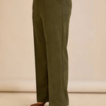 Κομψό παντελόνι με μπροστινή ραφή και ψηλή μέση – Χακί