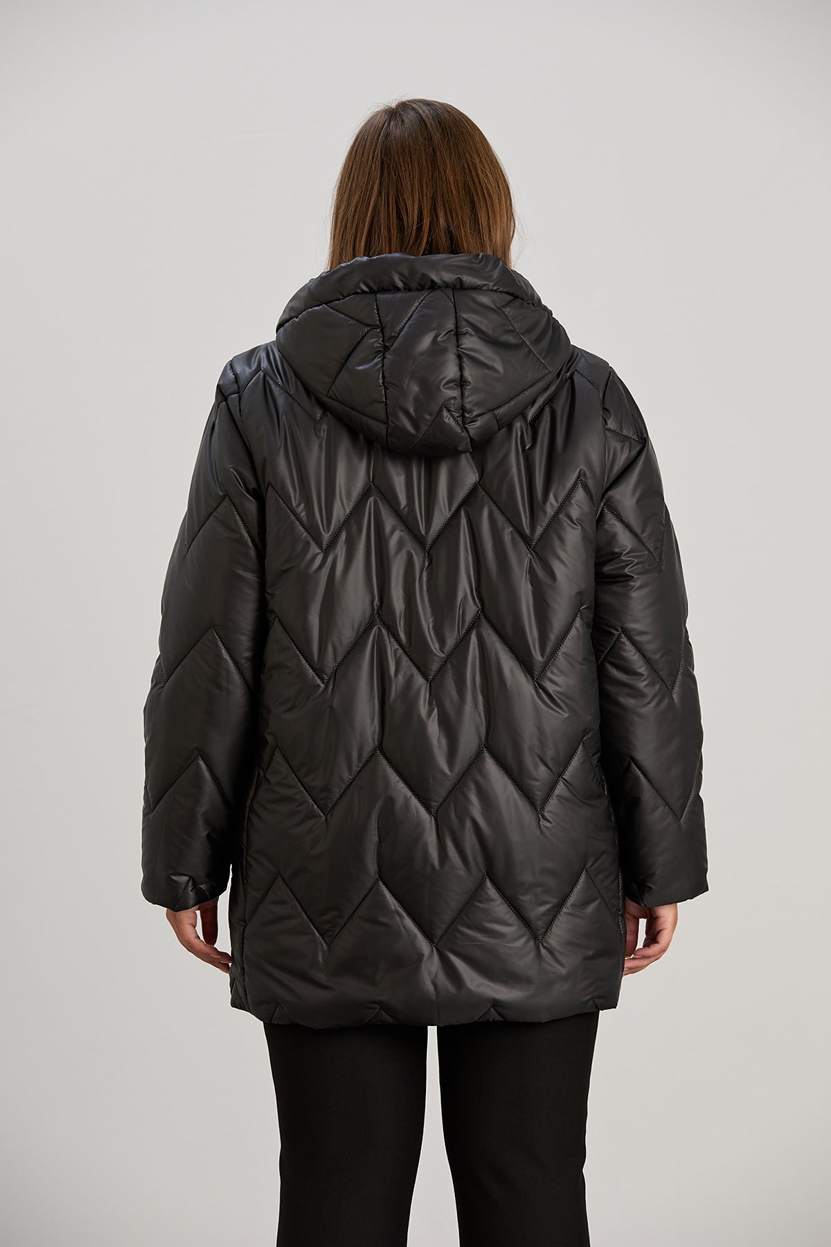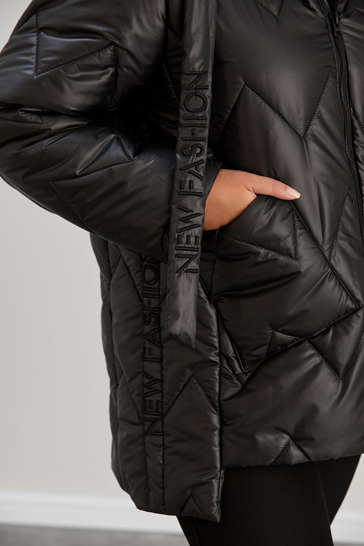 Μοντέρνο μπουφάν με διπλό φερμουάρ και αποσπώμενη κουκούλα σε μεγάλα μεγέθη- Μαύρο