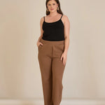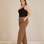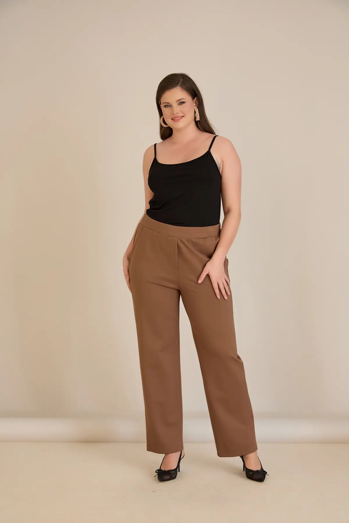 Παντελόνι με ελαστική μέση και ίσια γραμμή σε χρώμα μόκα σε μεγάλα μεγέθη