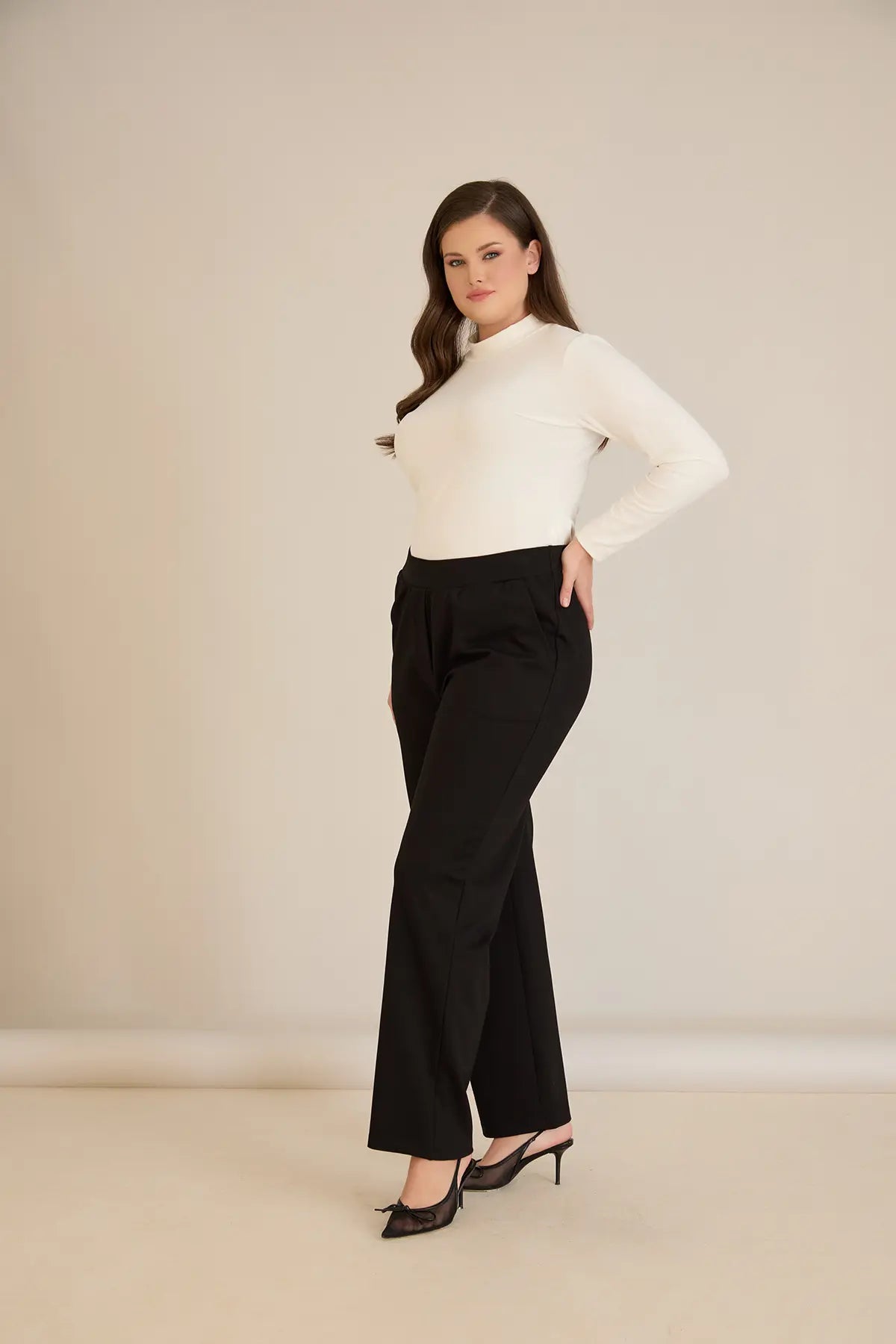 Παντελόνι με ελαστική μέση και ίσια γραμμή σε χρώμα Μαύρο σε μεγάλα μεγέθη