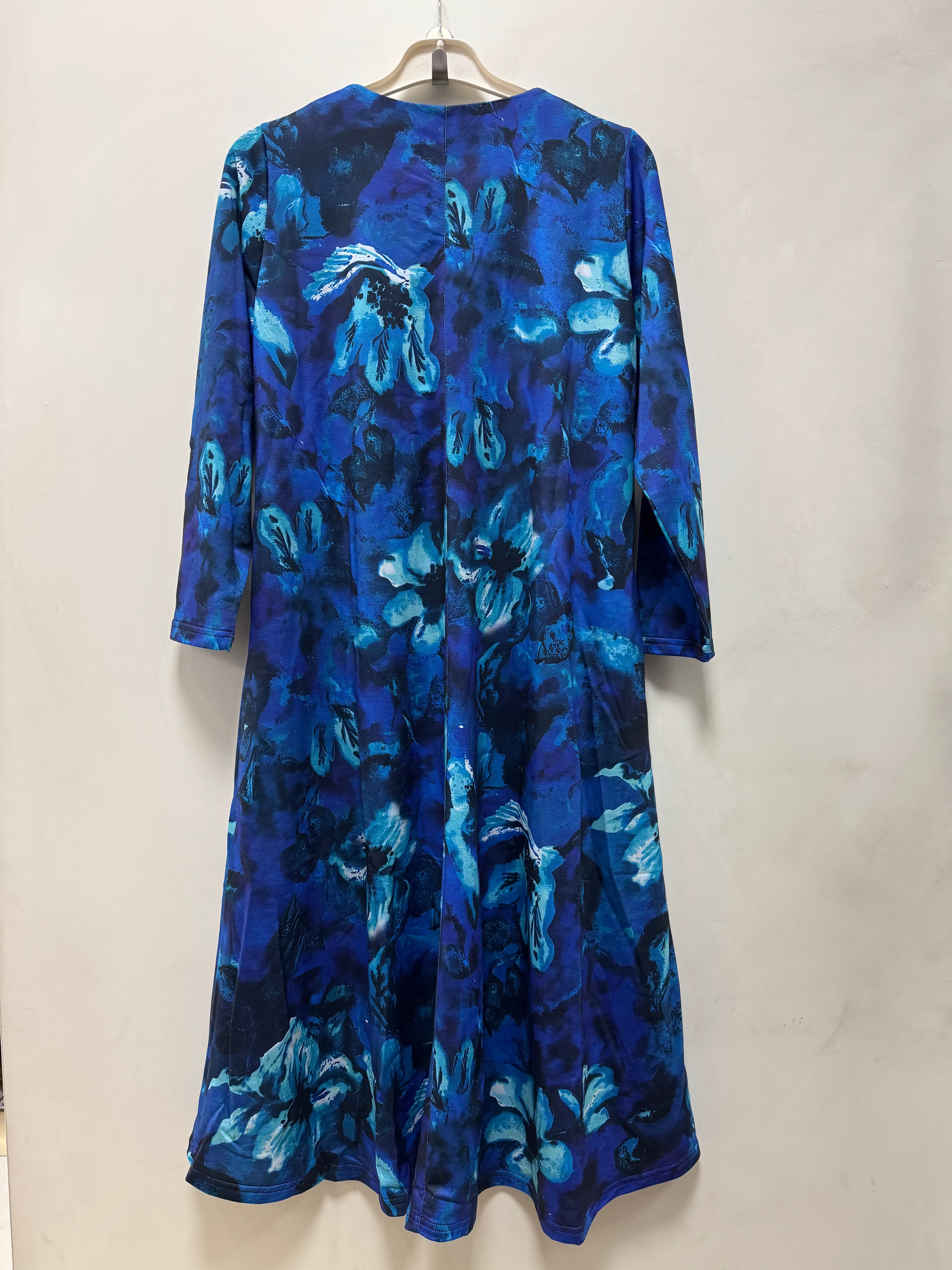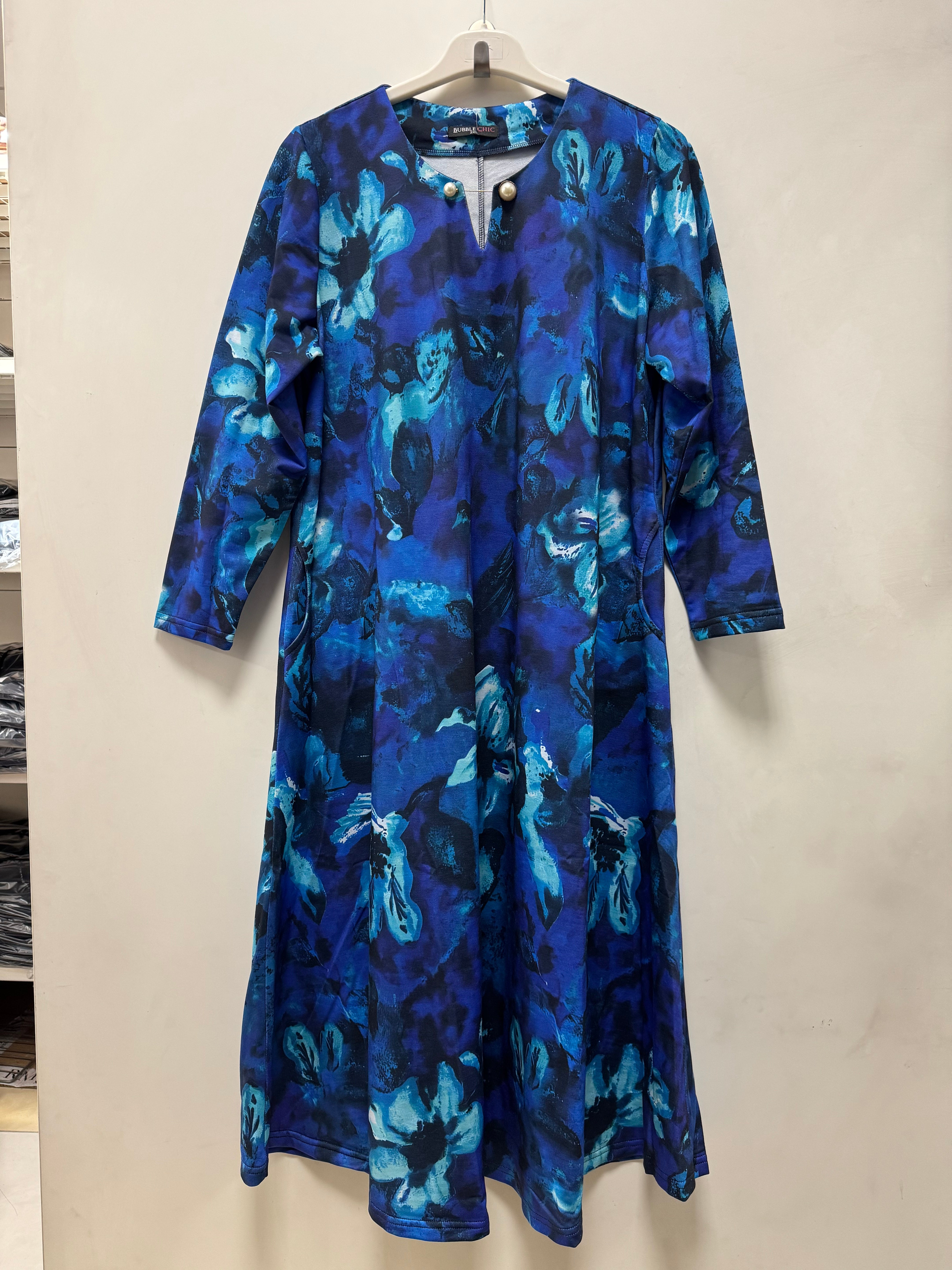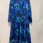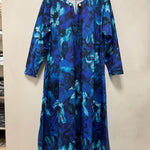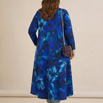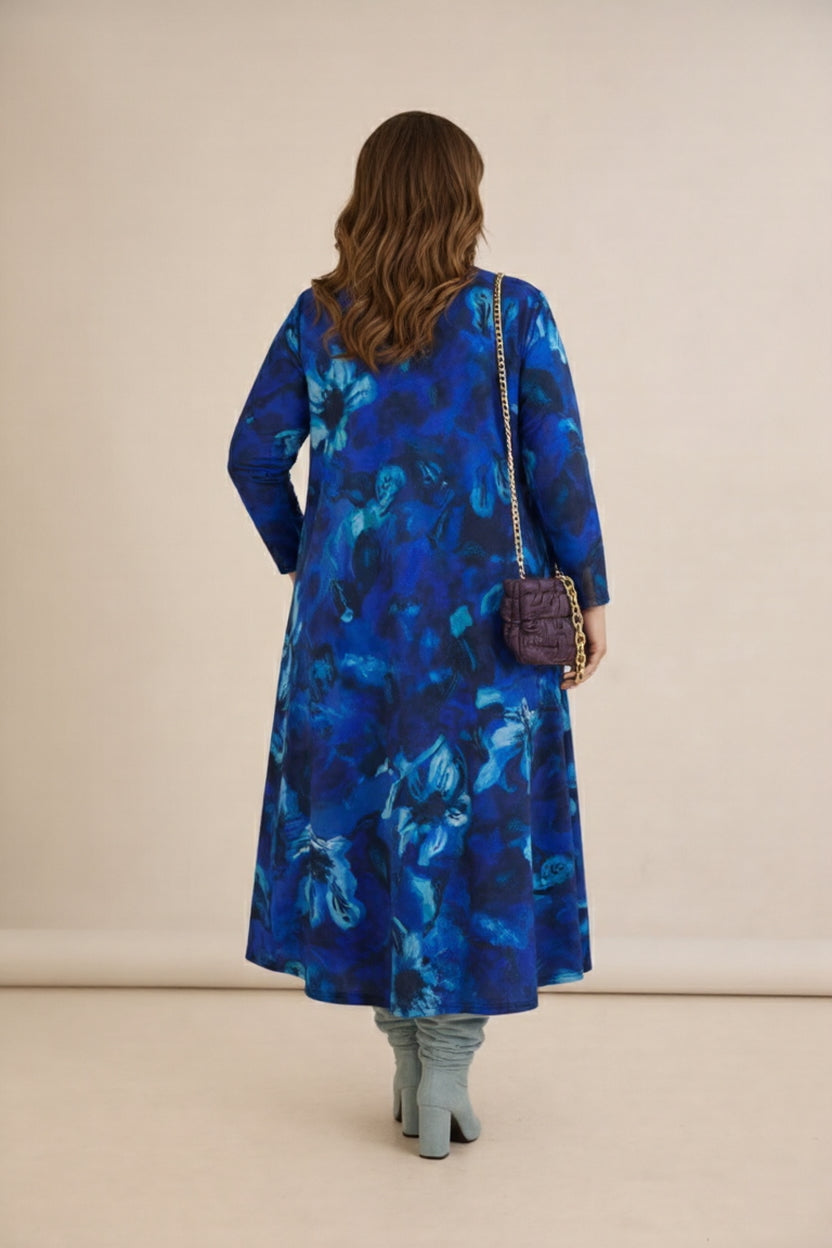 Πολύχρωμο μακρύ φόρεμα σε γραμμή Α με εντυπωσιακή καρφίτσα- Μπλε
