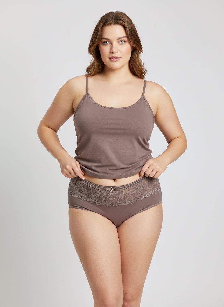 Βαμβακερά σλιπ με δαντέλα σε Απαλή μόκα χρώμα σε μεγάλα μεγέθη