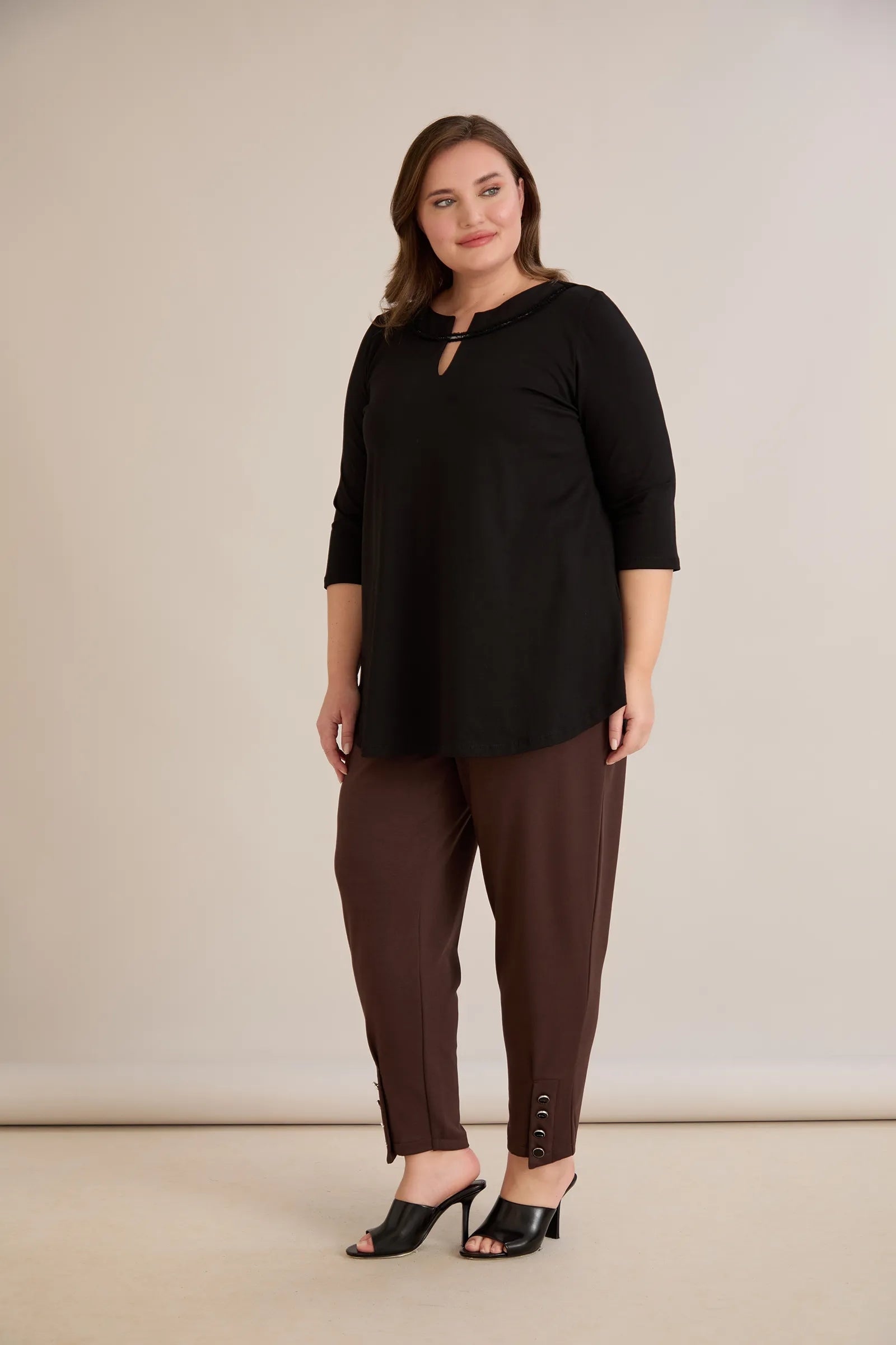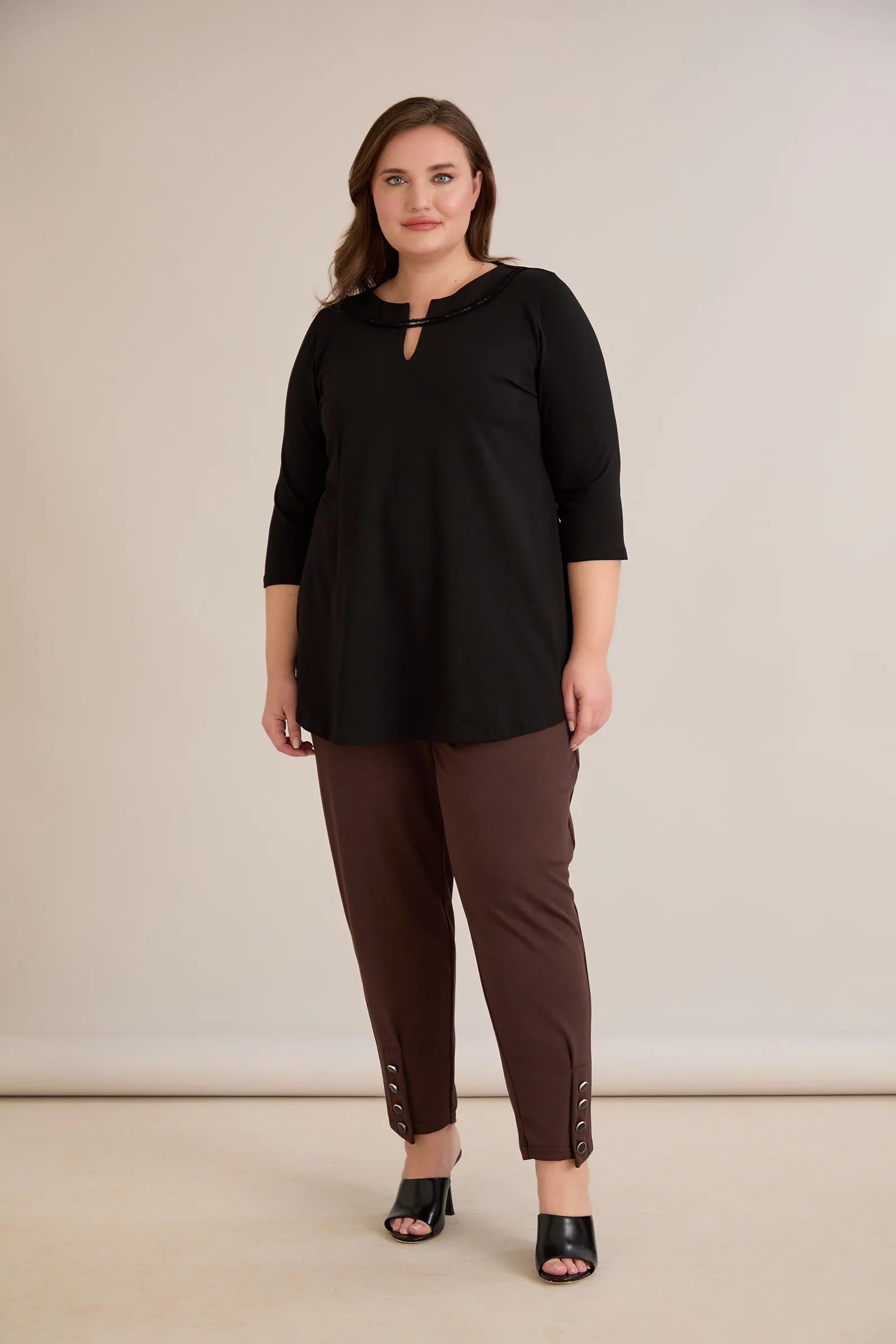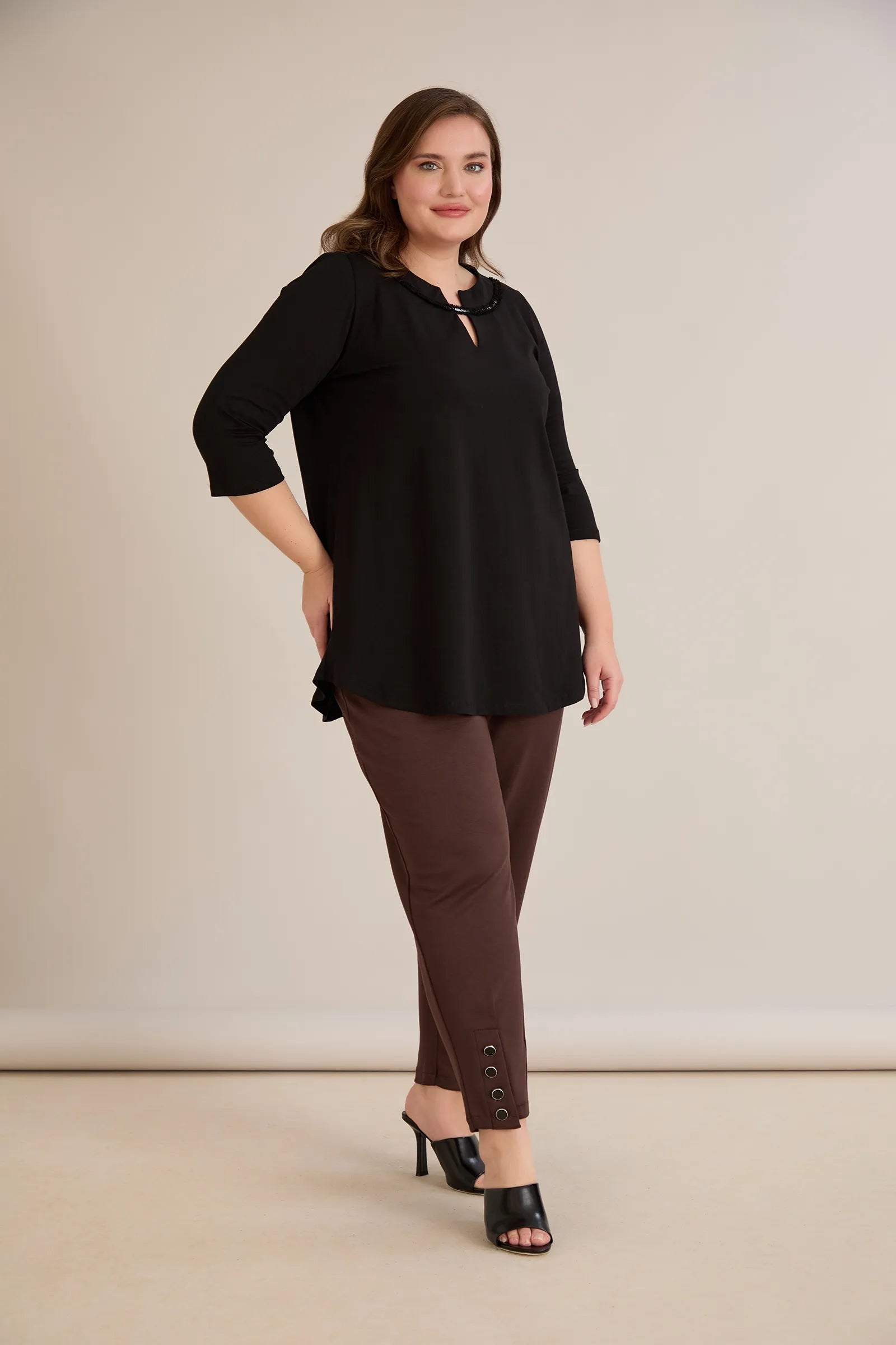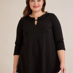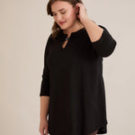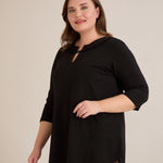 Βαμβακερή τουνίκ με εντυπωσιακό ντεκολτέ με ασημί λεπτομέρεια σε μαύρο χρώμα σε μεγάλα μεγέθη