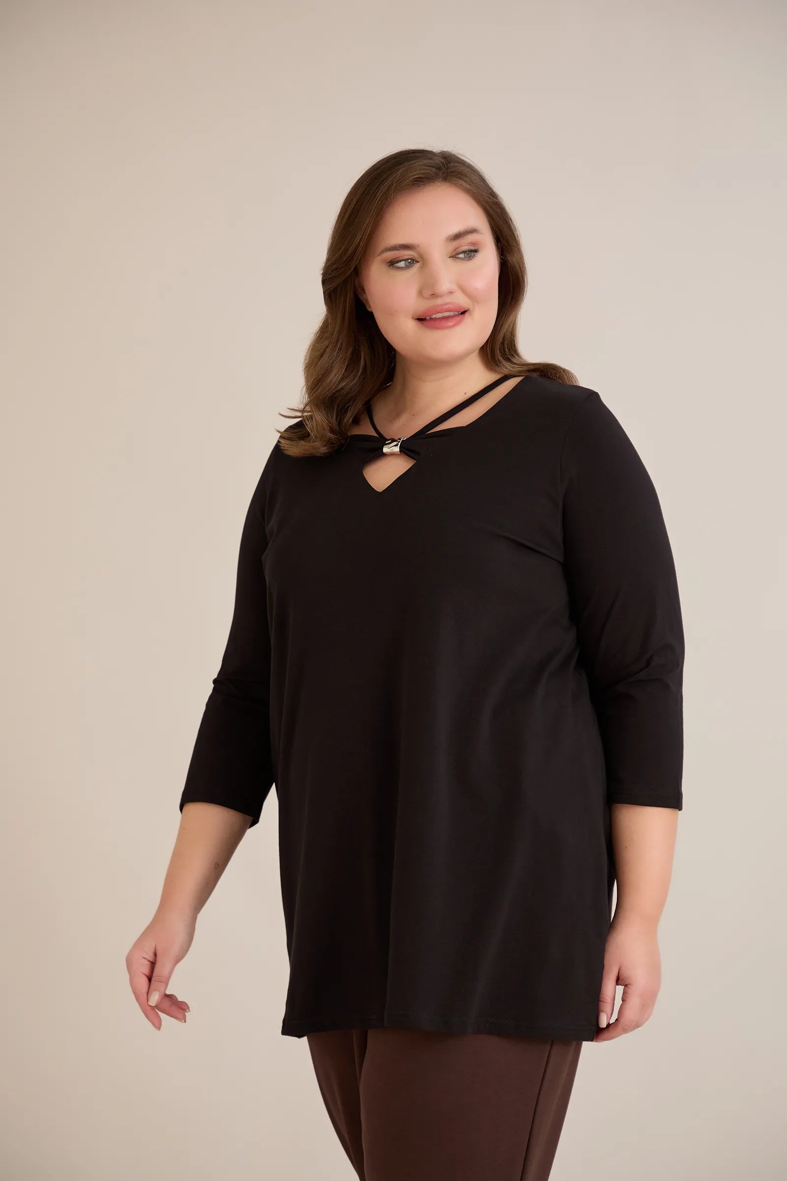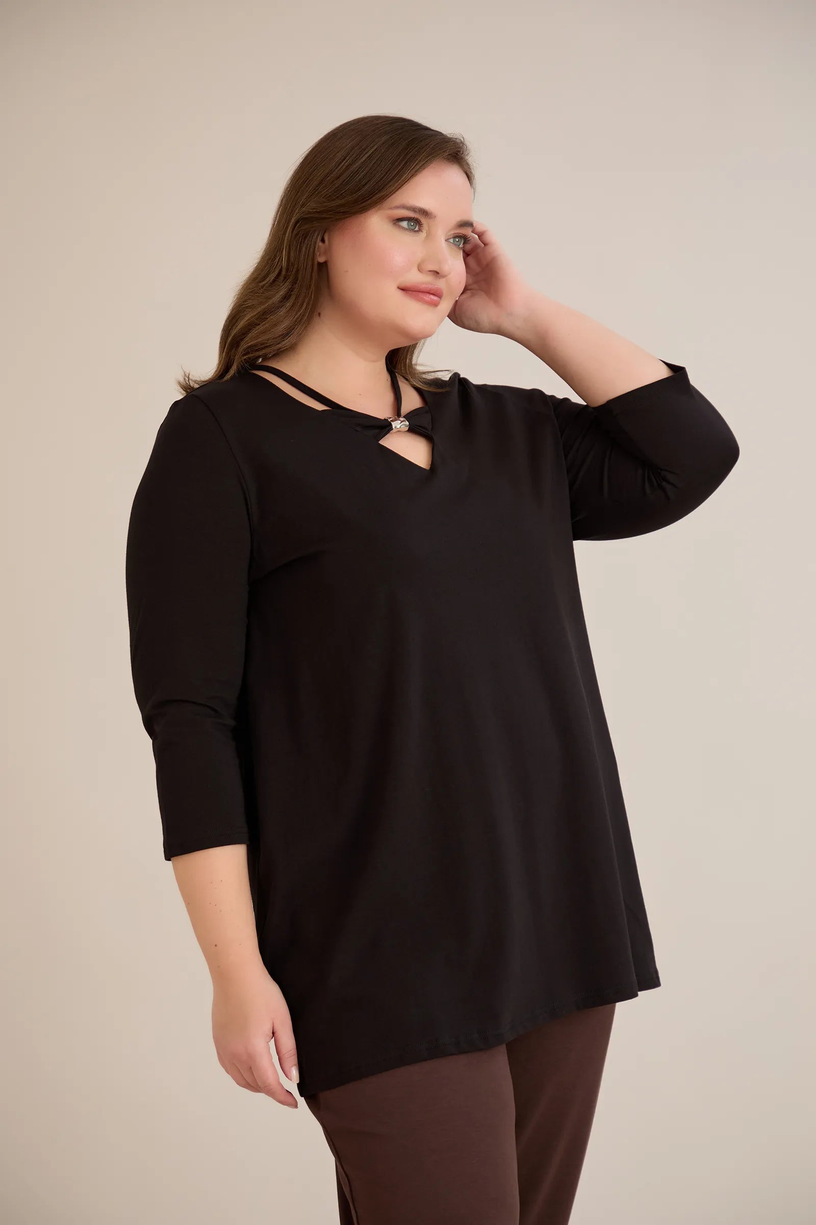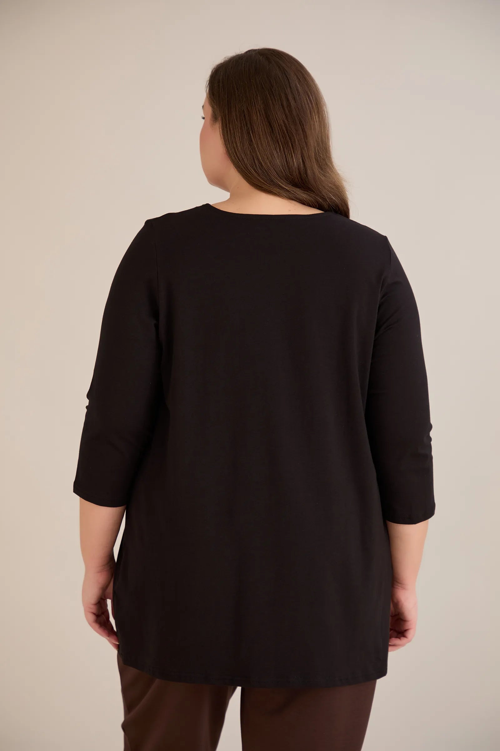 Βαμβακερή τουνίκ με μανίκι 7/8 και διακοσμητική λεπτομέρεια