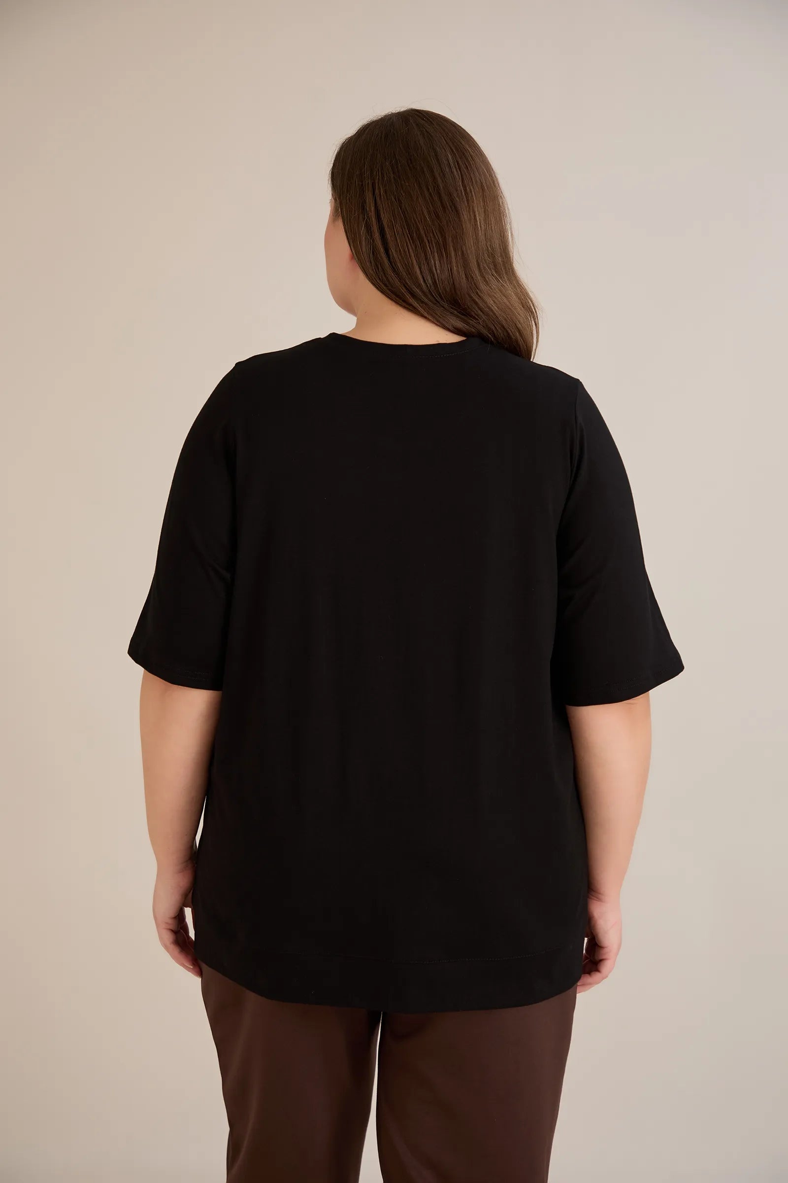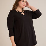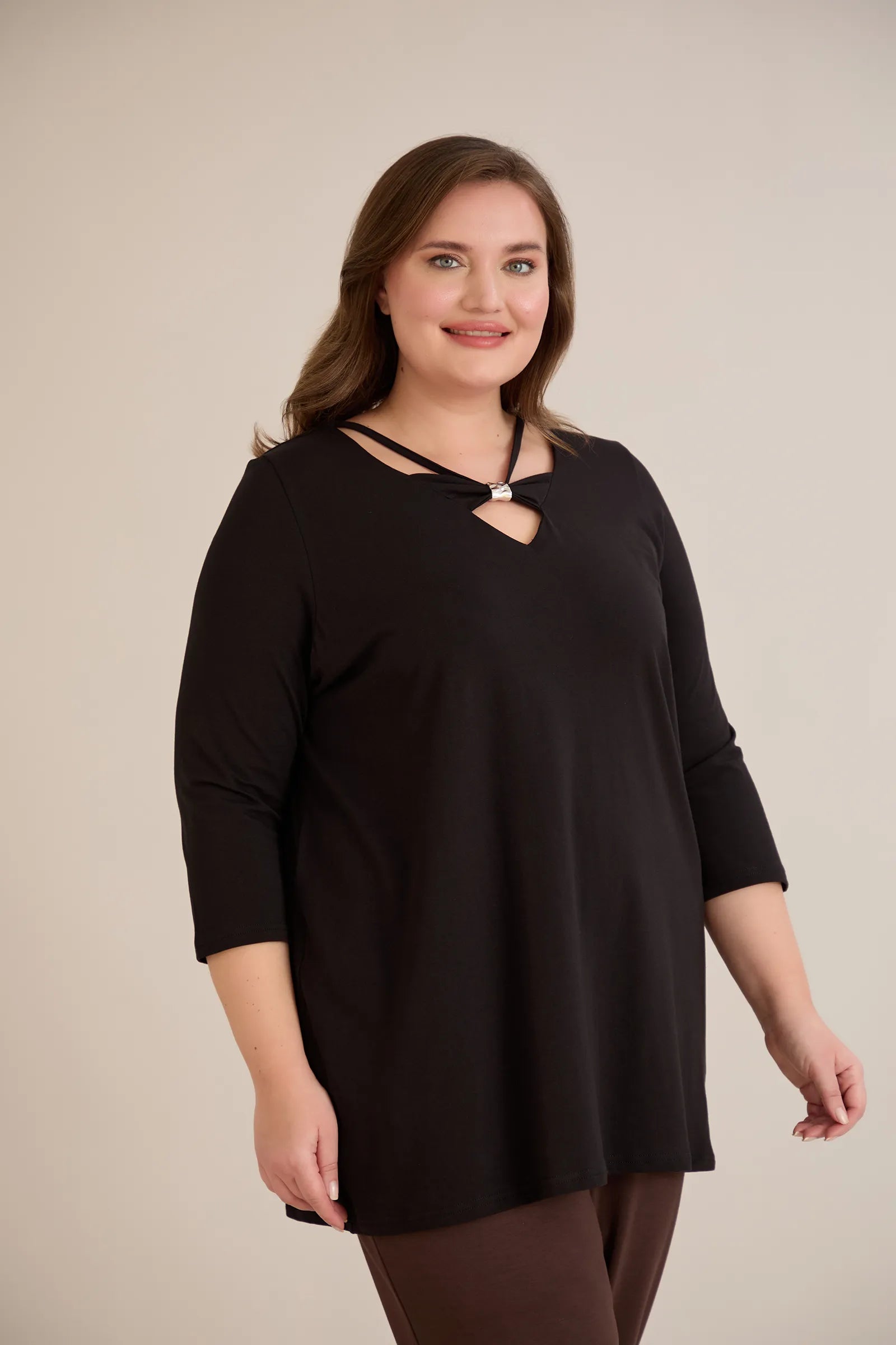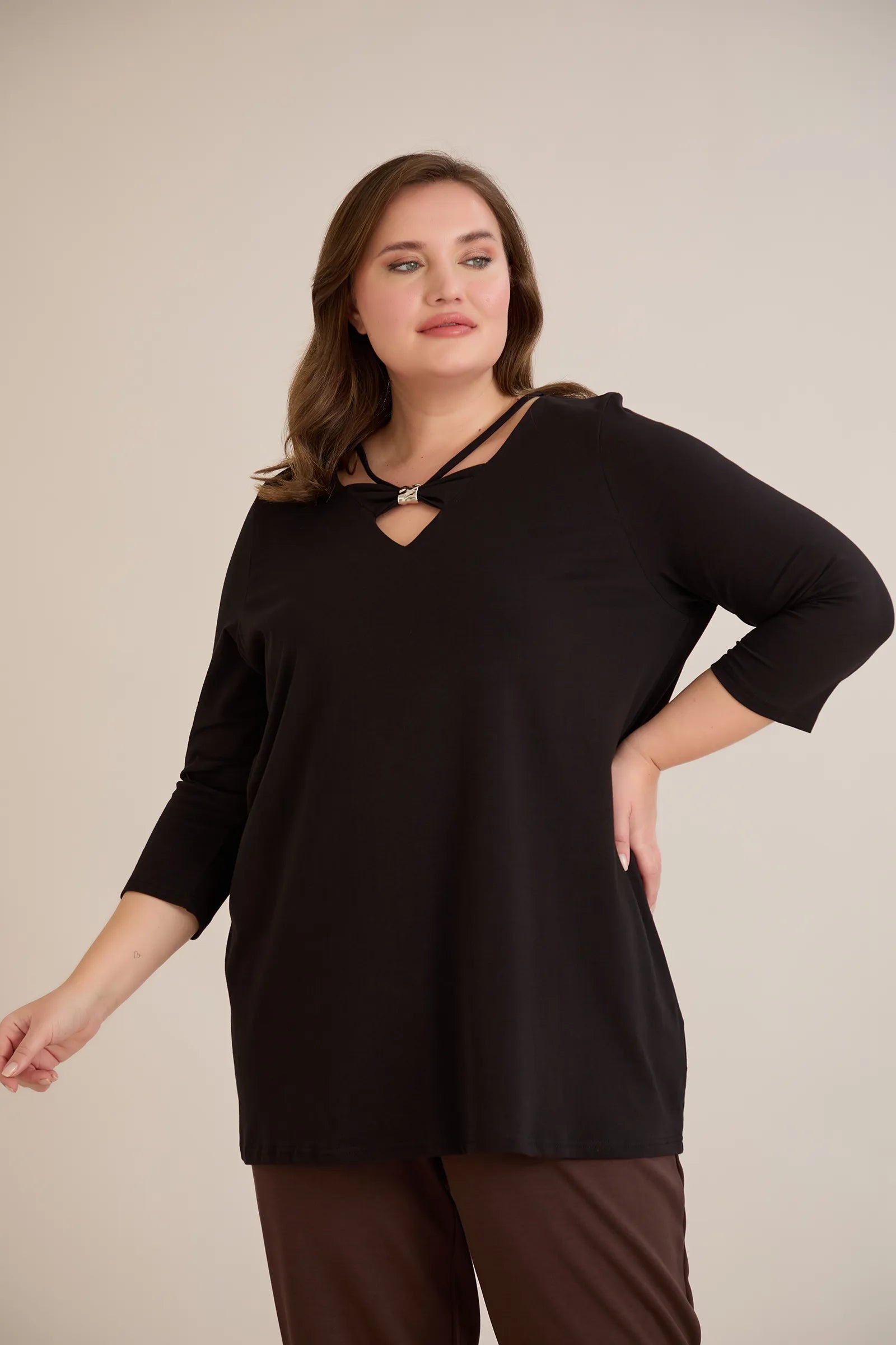 Βαμβακερή τουνίκ με μανίκι 7/8 και διακοσμητική λεπτομέρεια