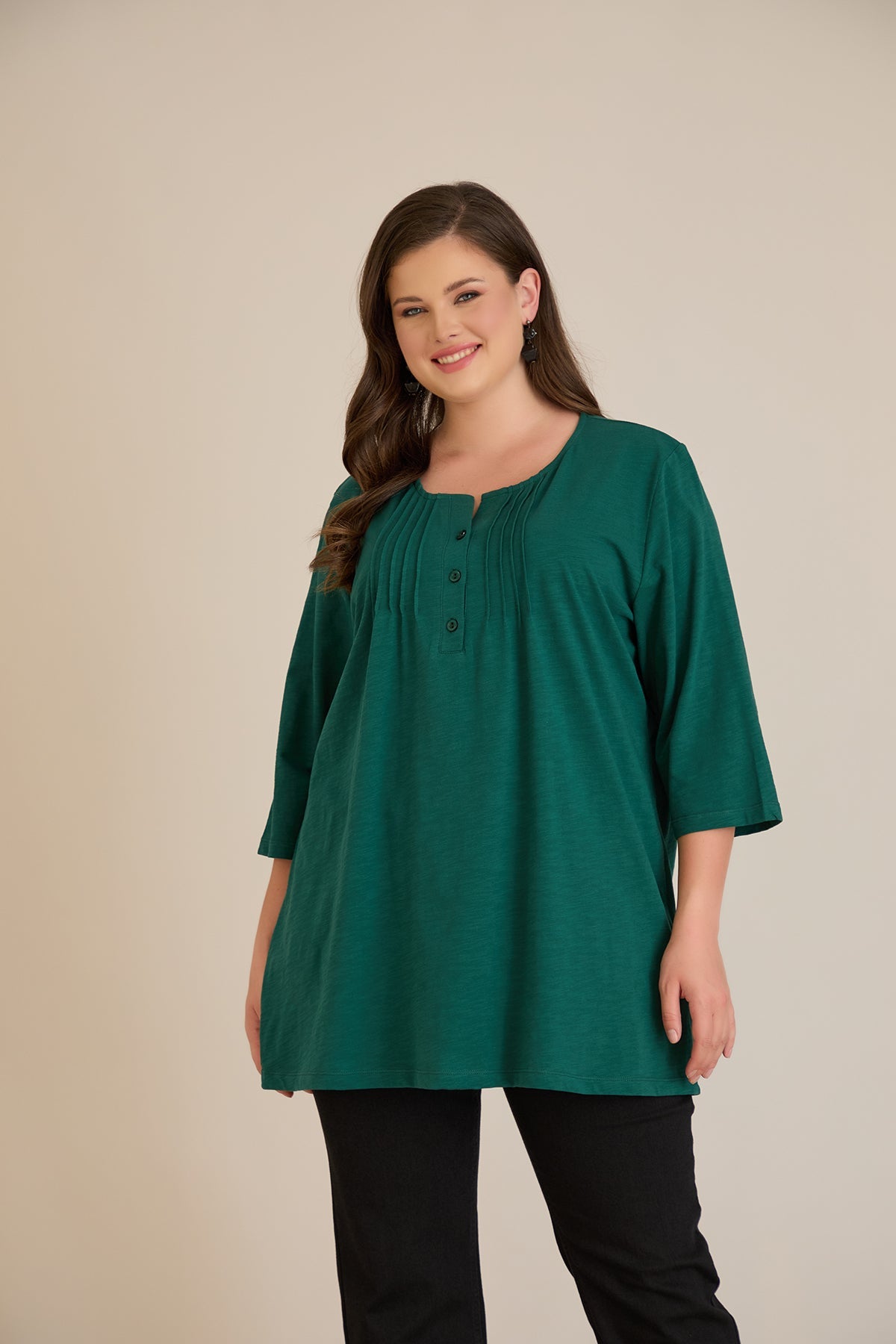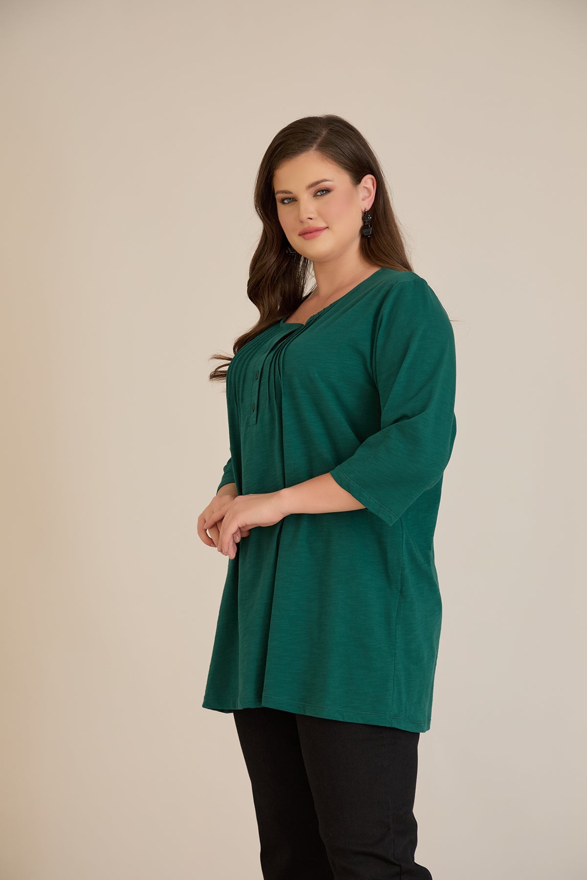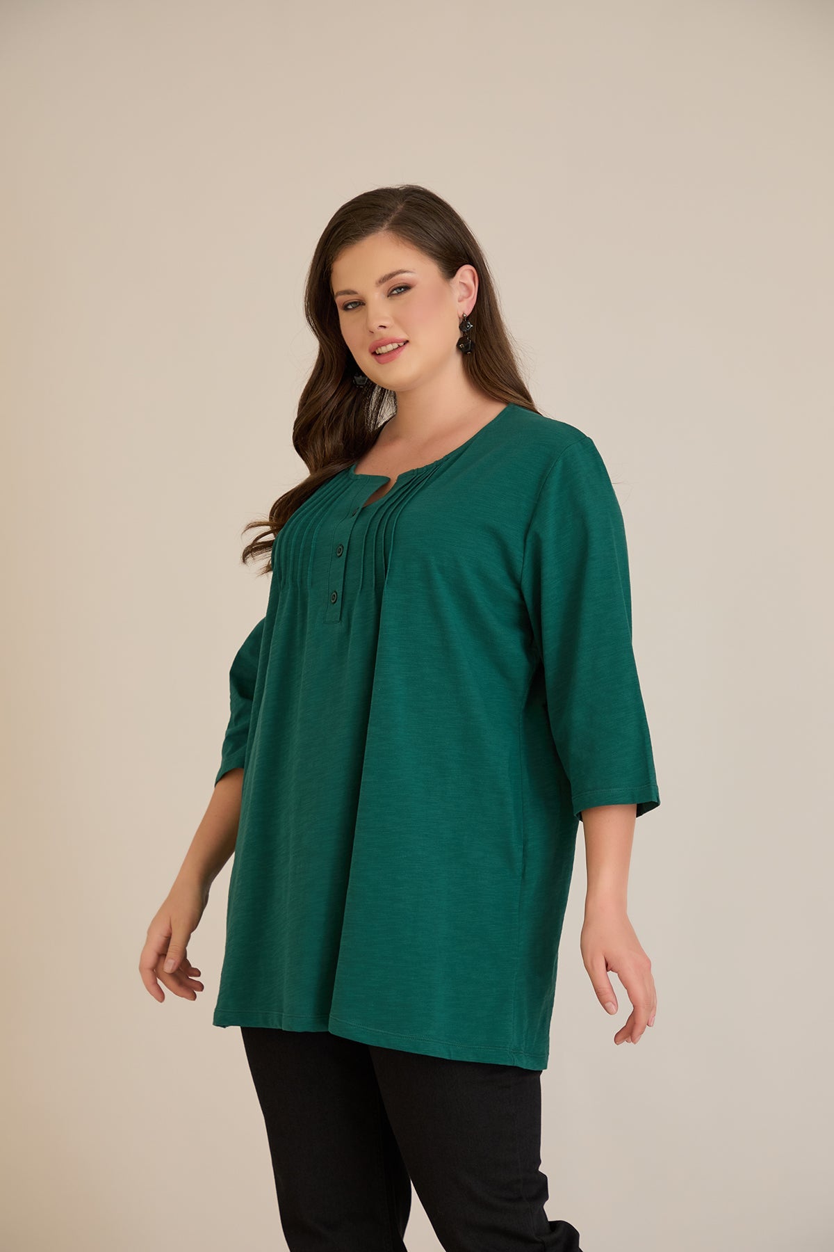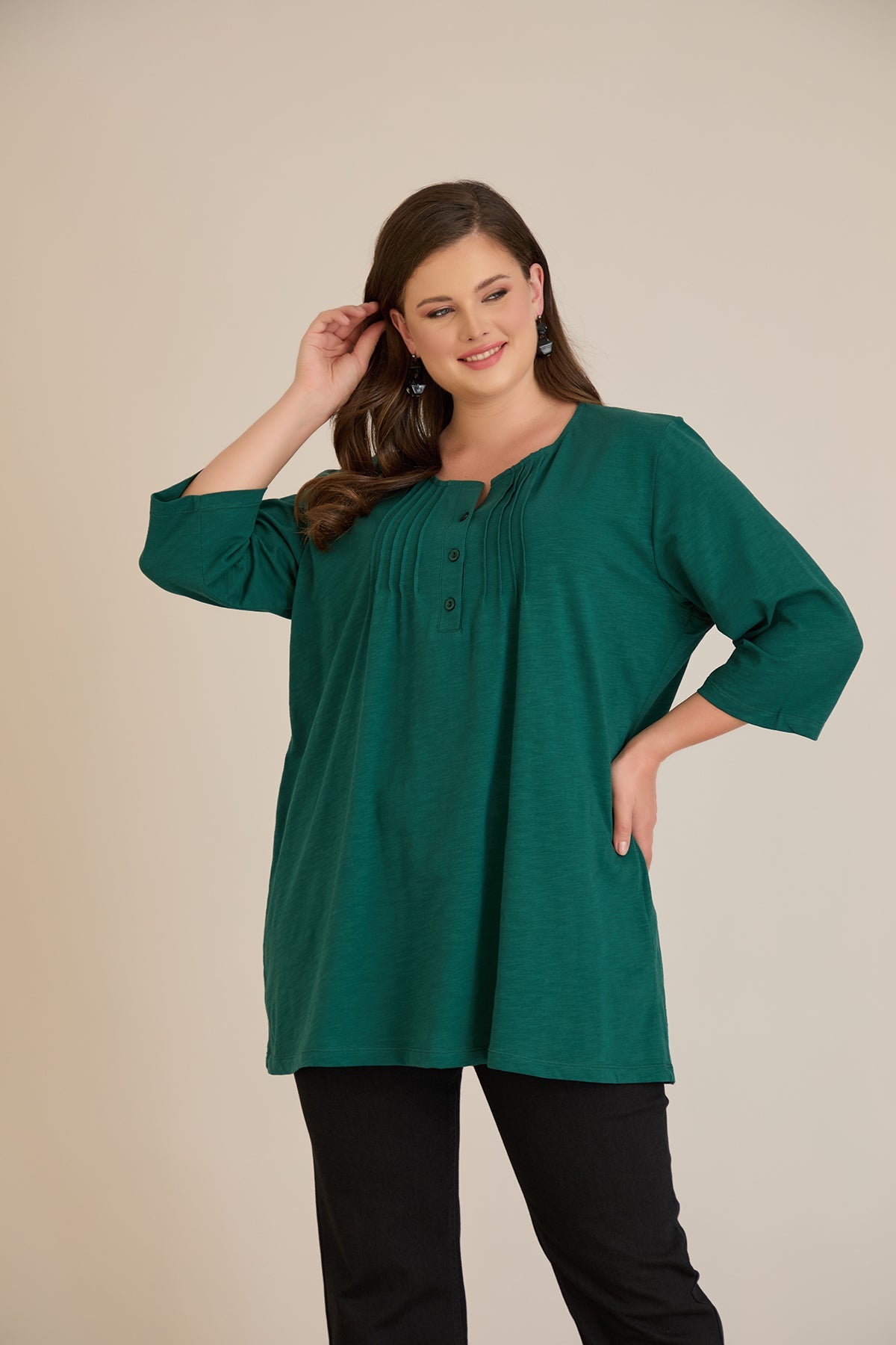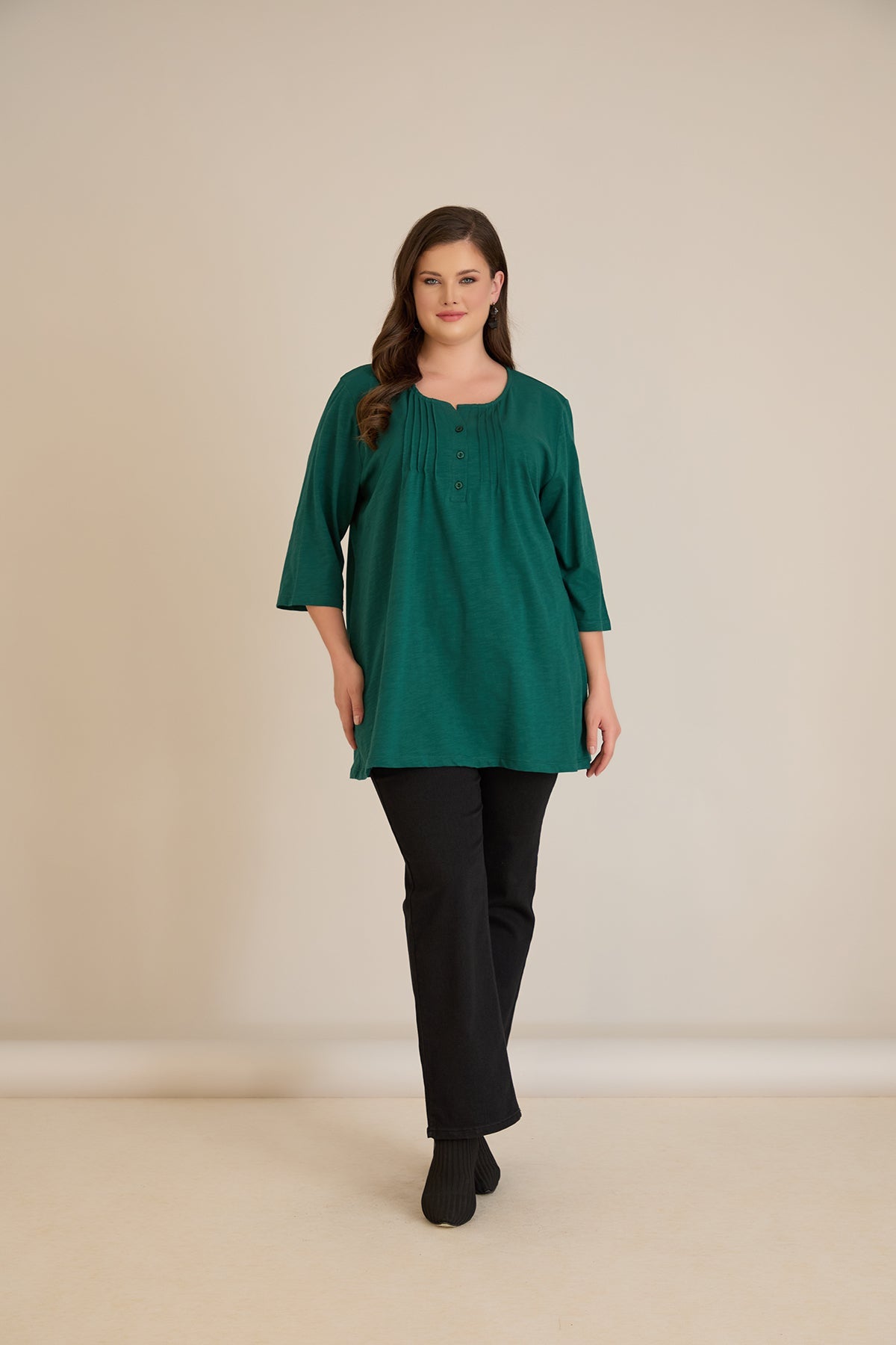 Βαμβακερή τουνίκ με πιέτες και μανίκια 7/8 – Λαδί
