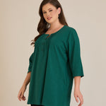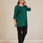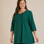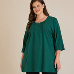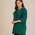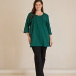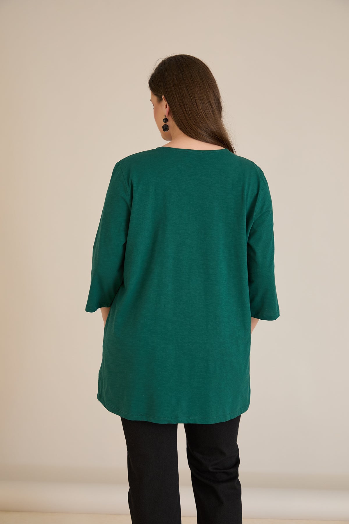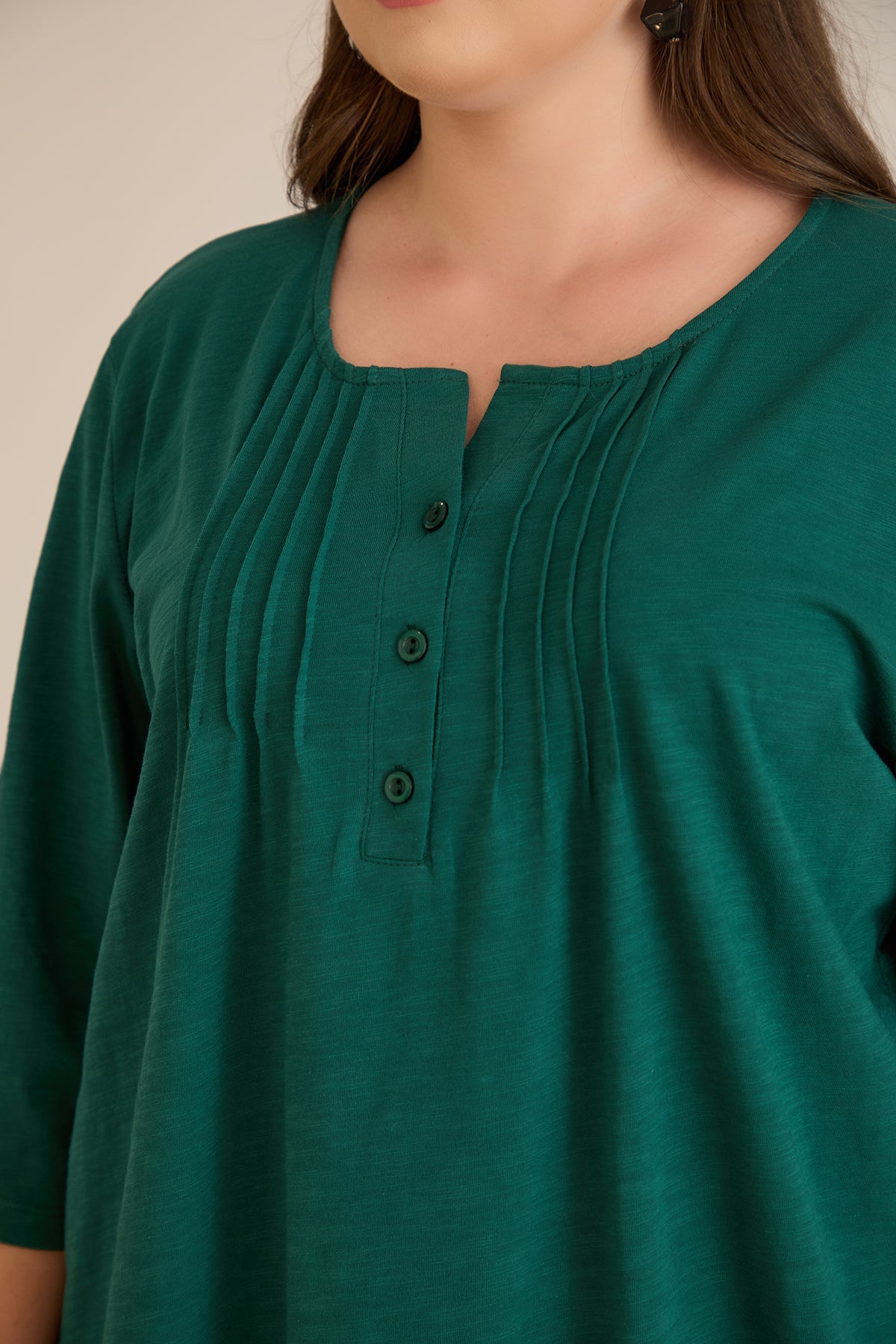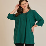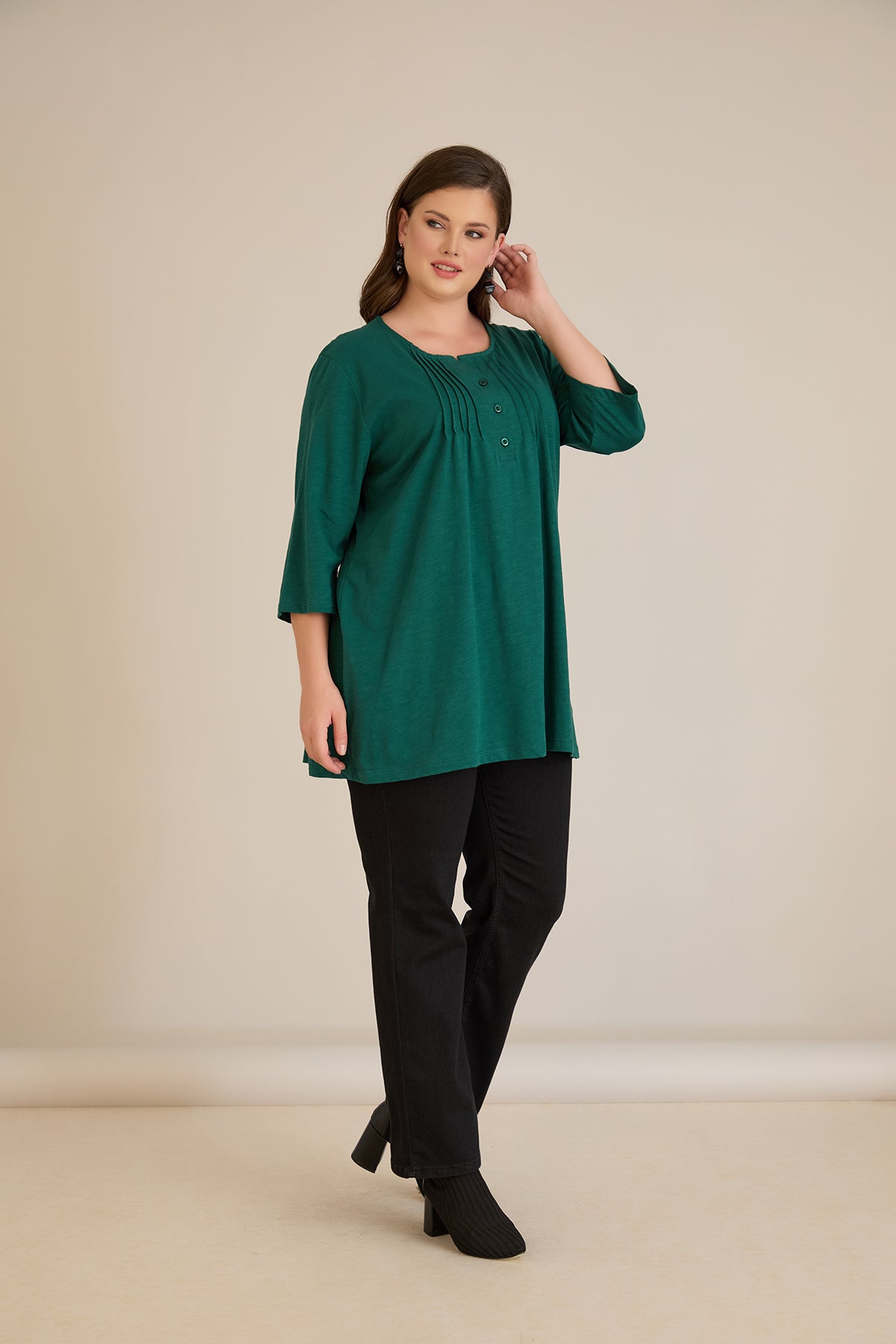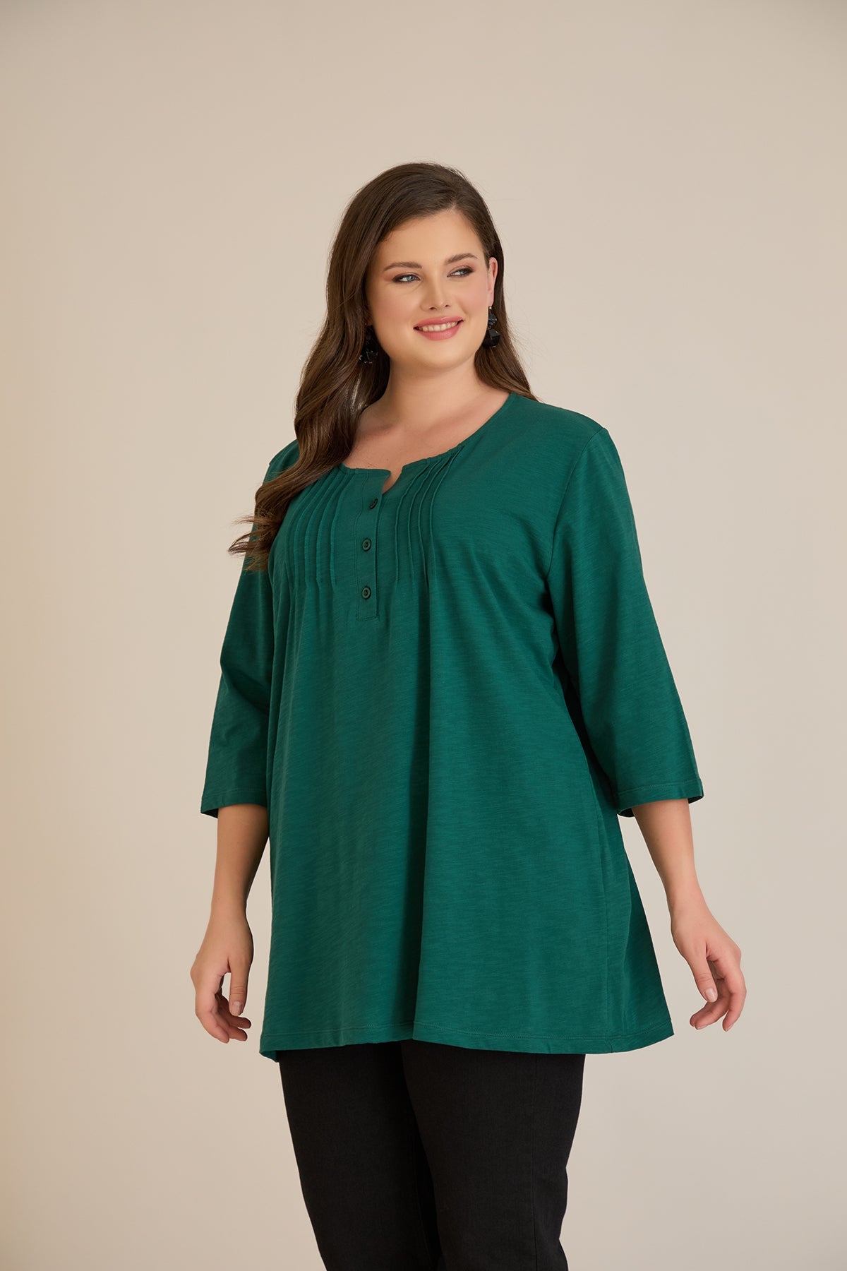 Βαμβακερή τουνίκ με πιέτες και μανίκια 7/8 – Λαδί