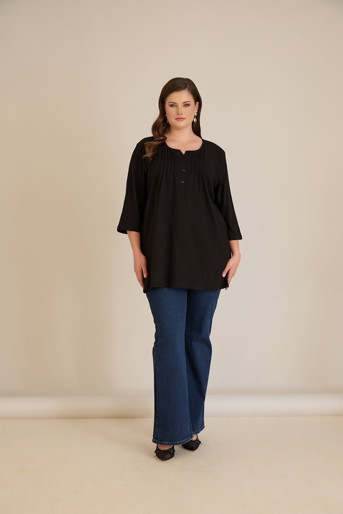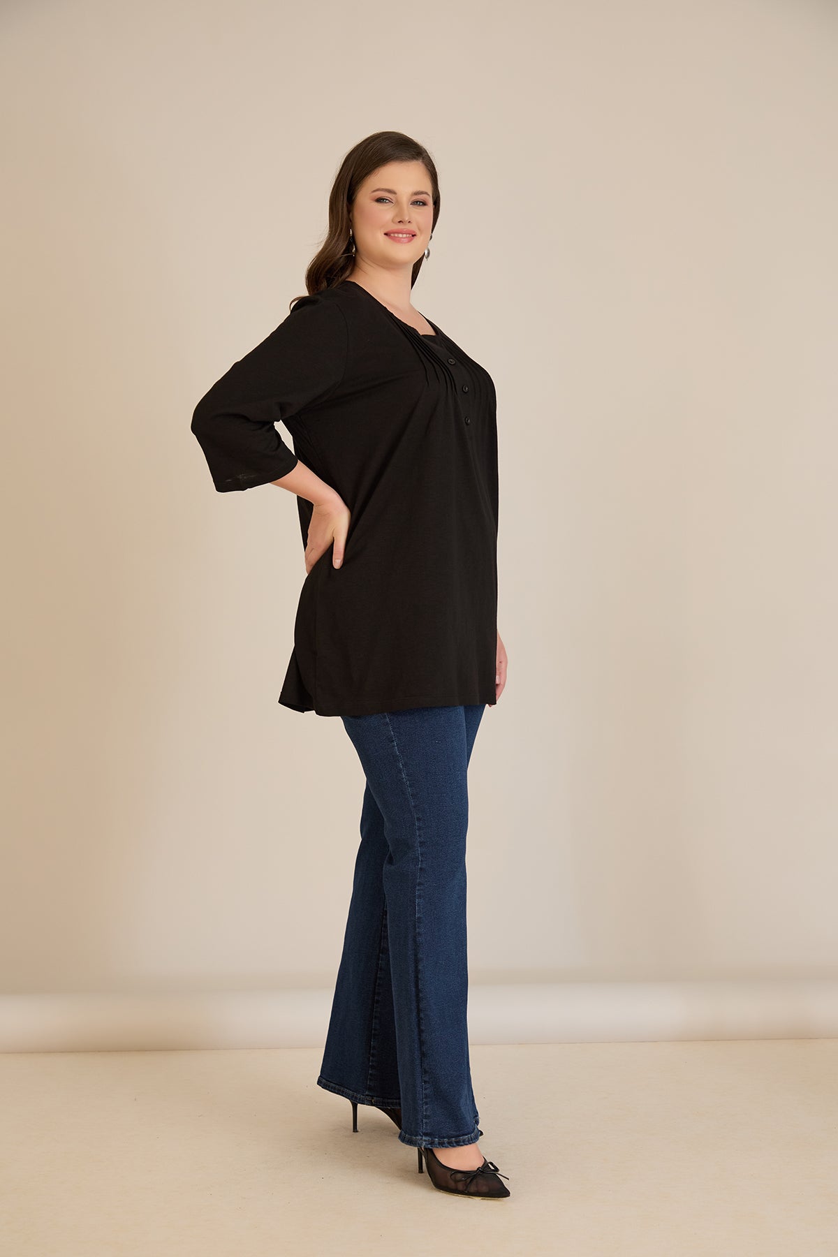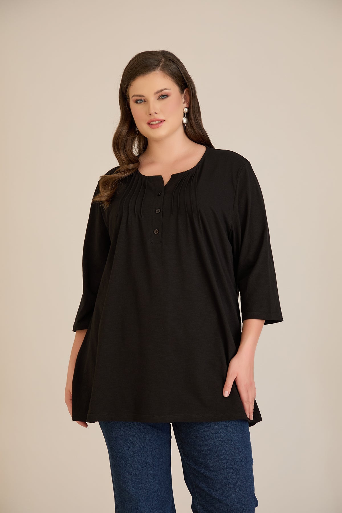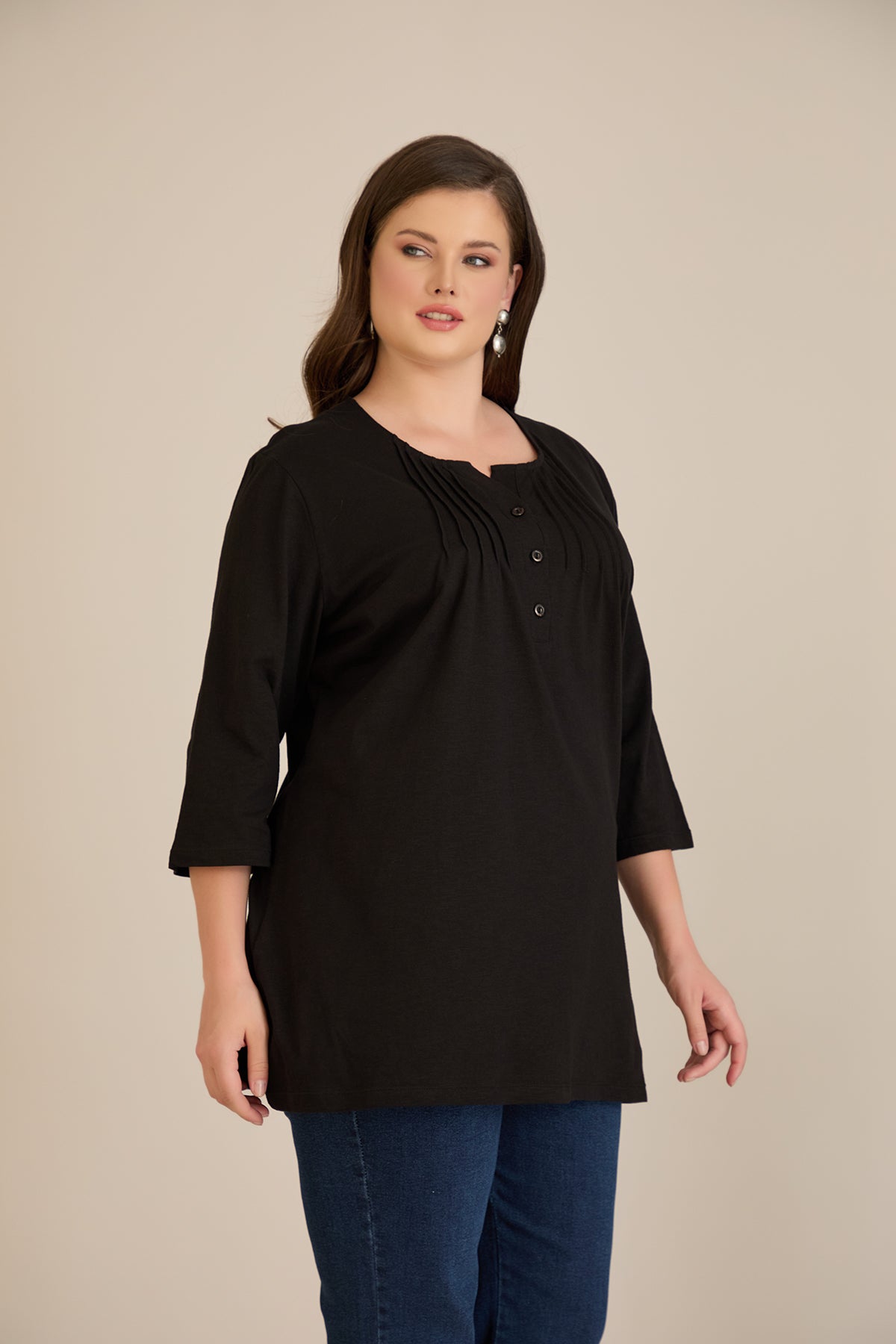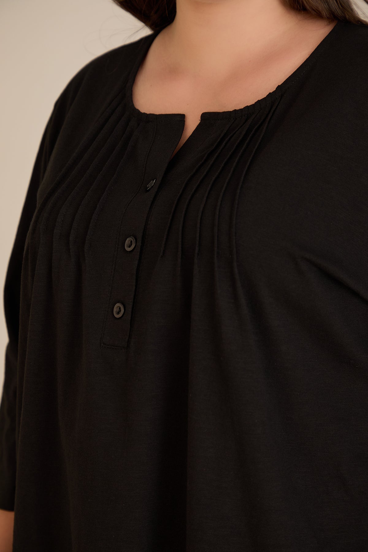 Βαμβακερή τουνίκ με πιέτες και μανίκια 7/8 – Μαύρο