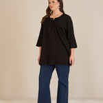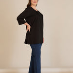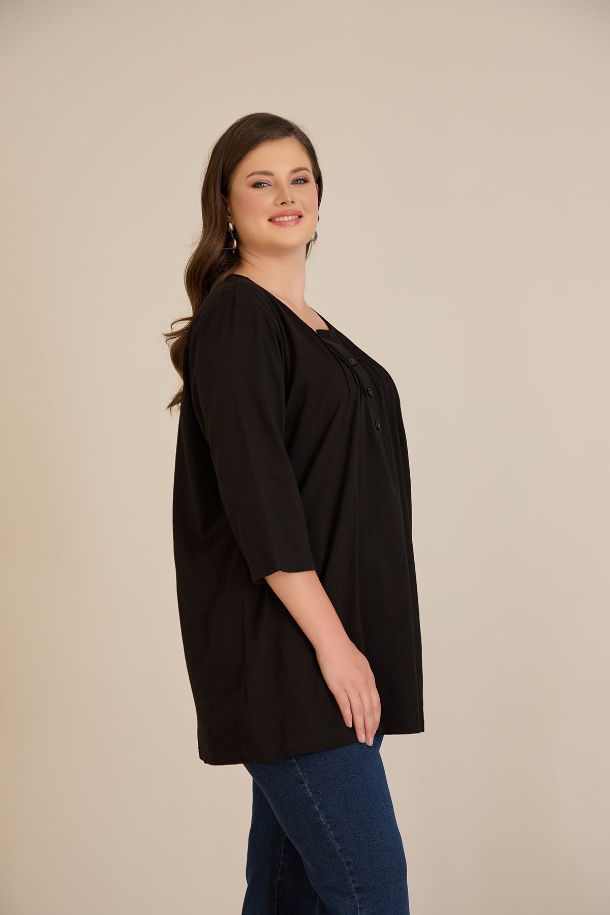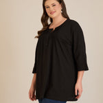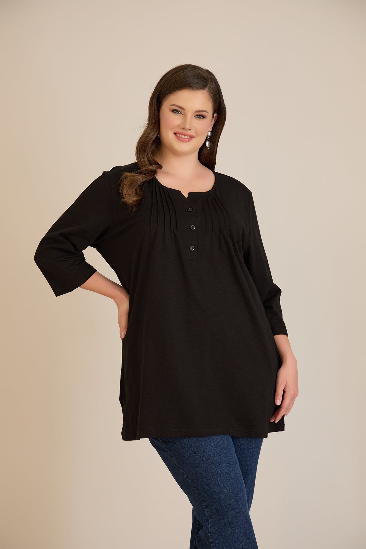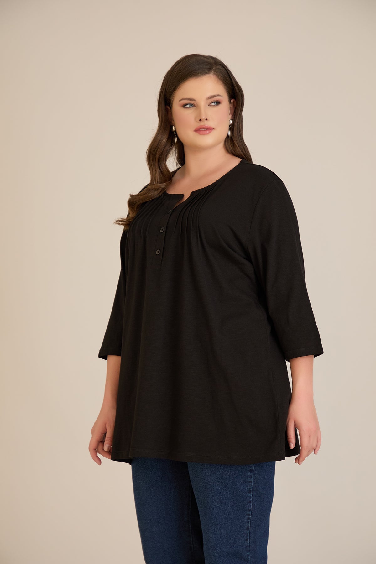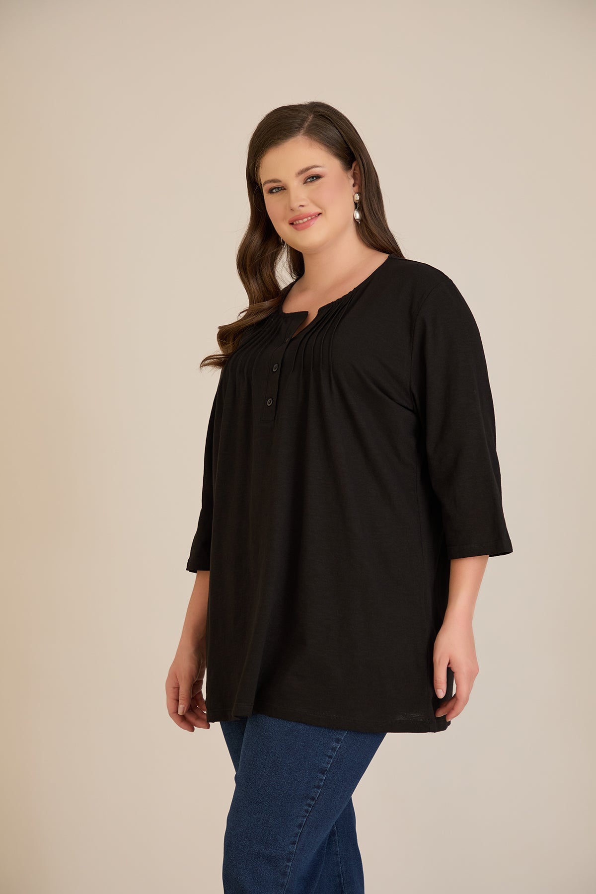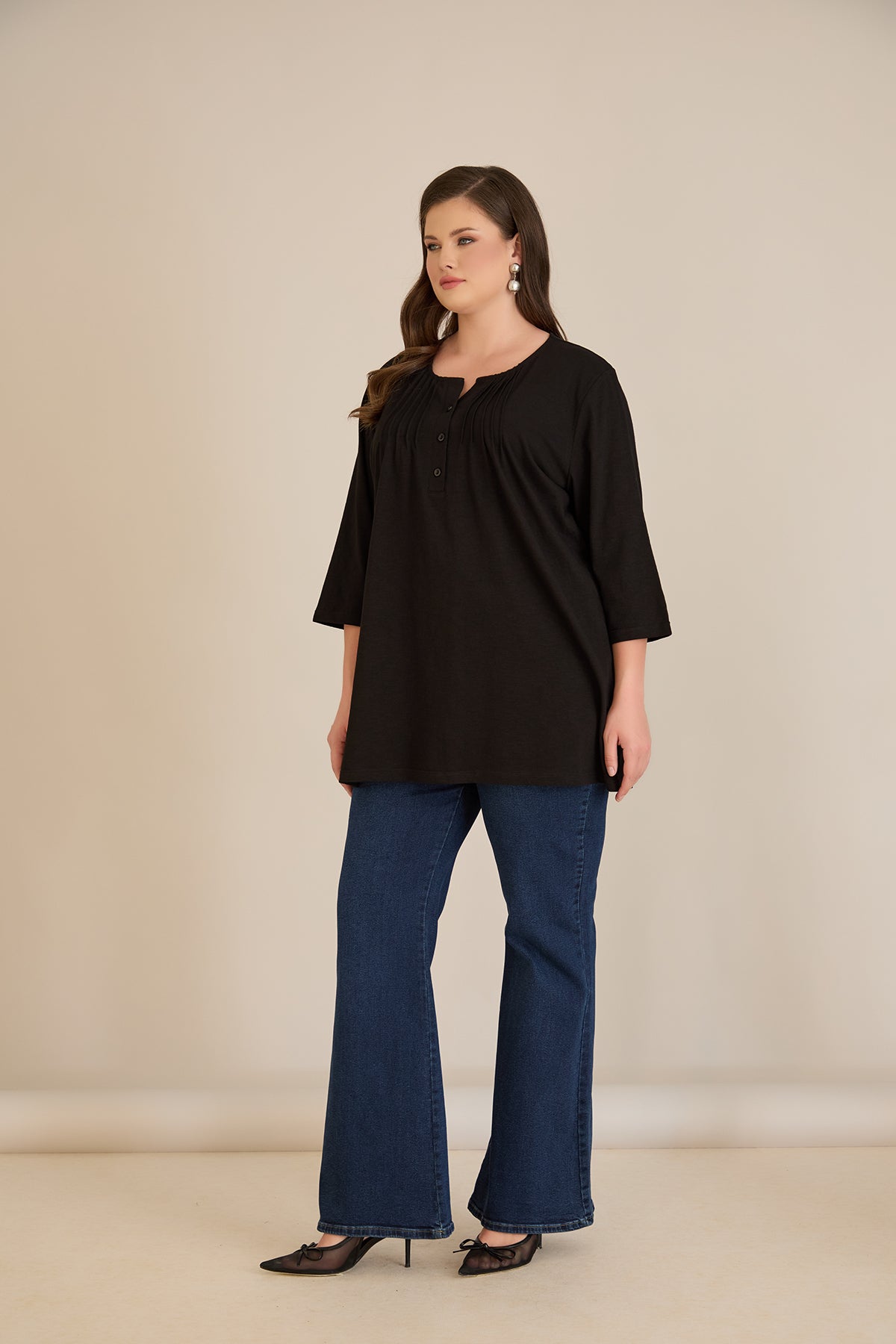 Βαμβακερή τουνίκ με πιέτες και μανίκια 7/8 – Μαύρο