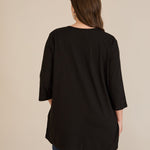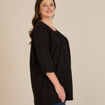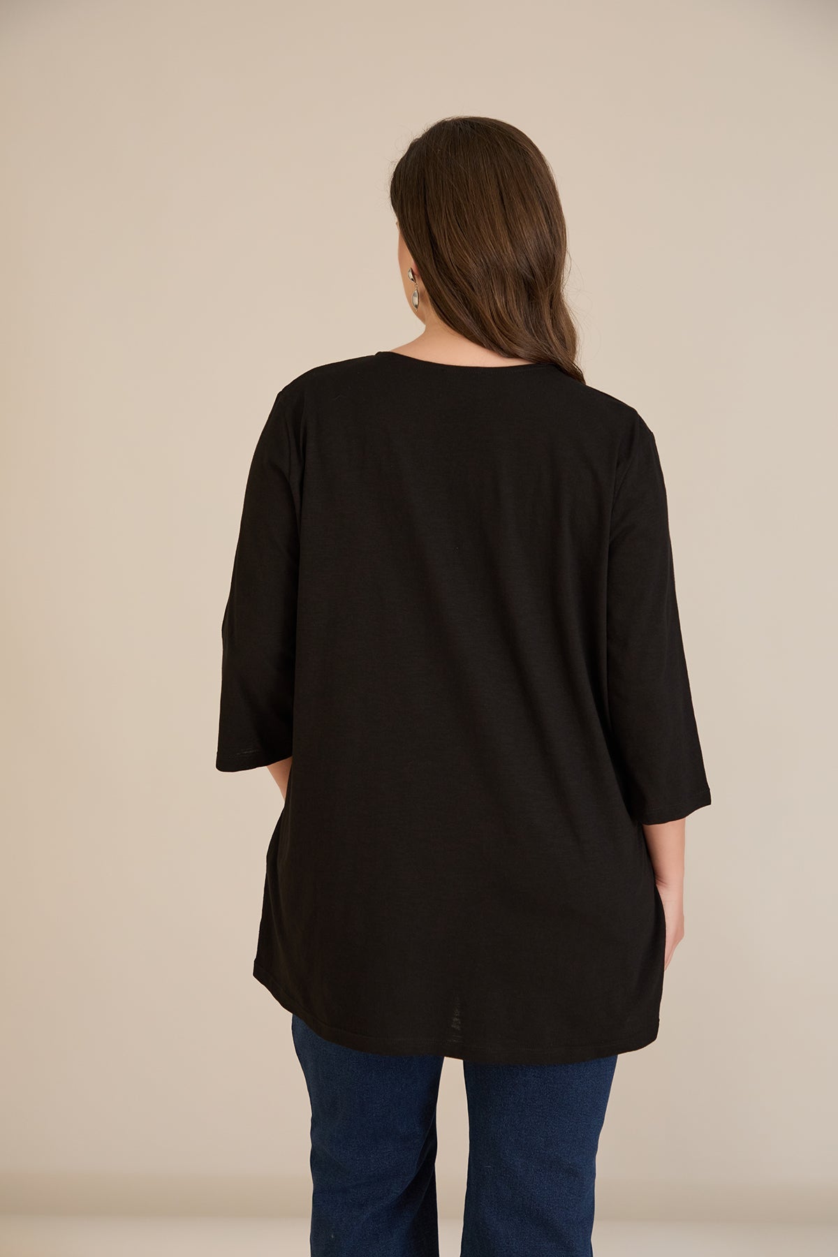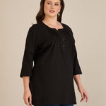 Βαμβακερή τουνίκ με παγιέτες και μανίκια 7/8 σε Μαύρο χρώμα σε μεγάλα μεγέθη