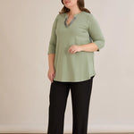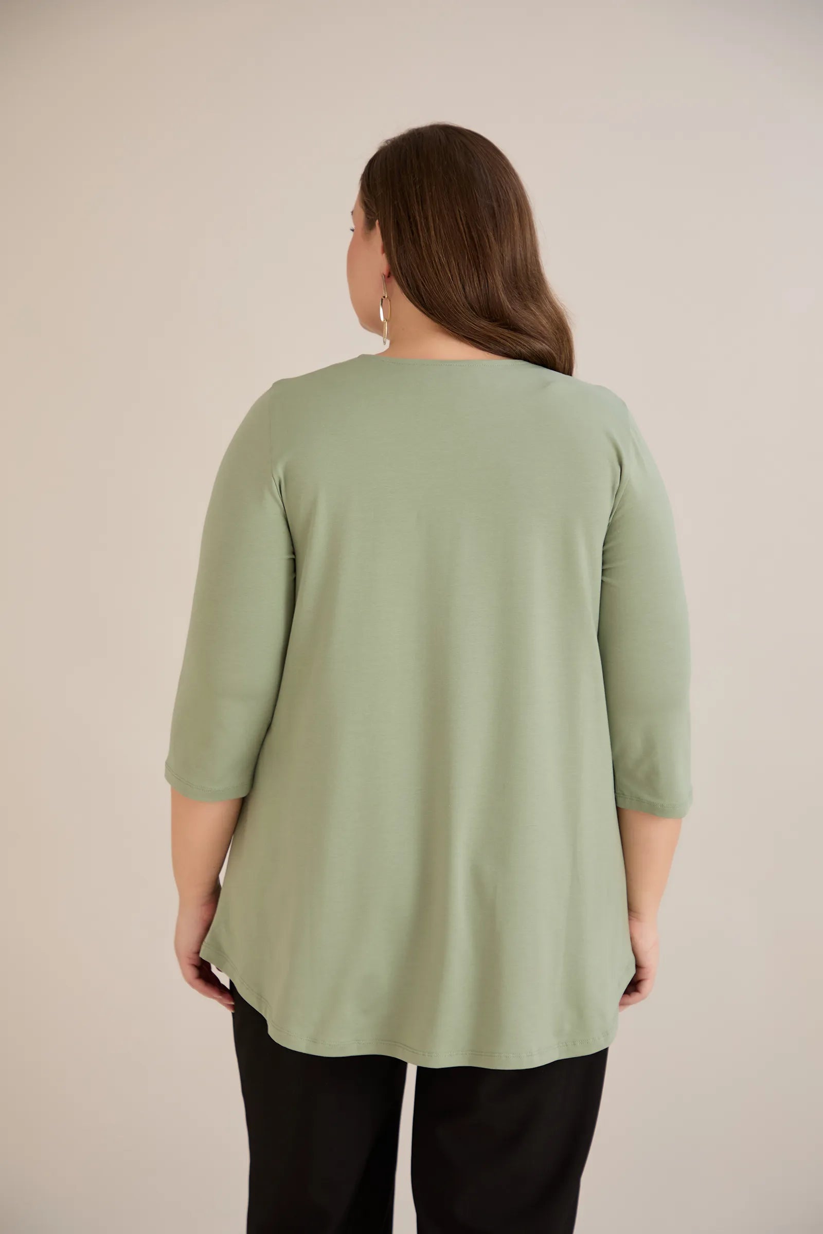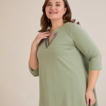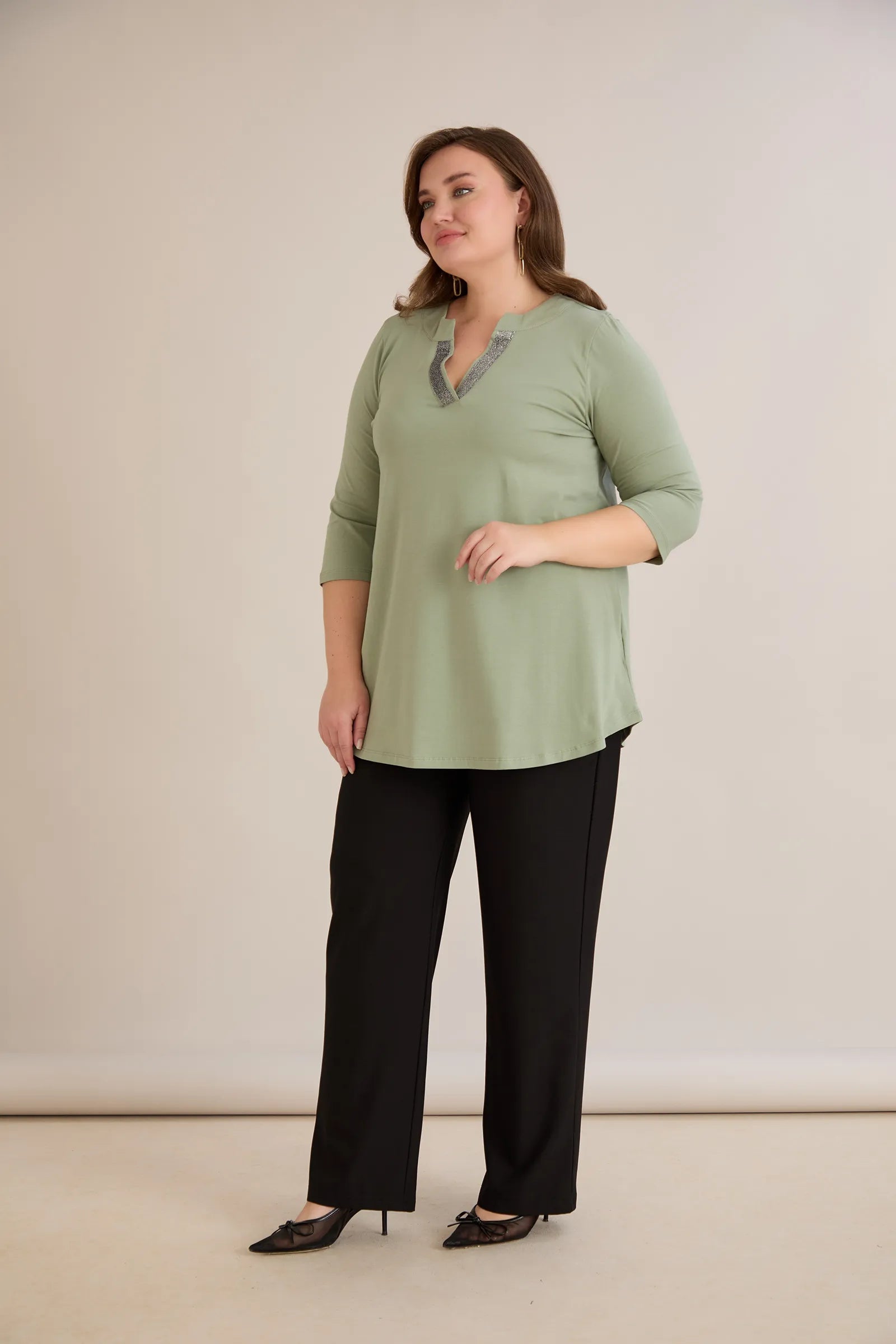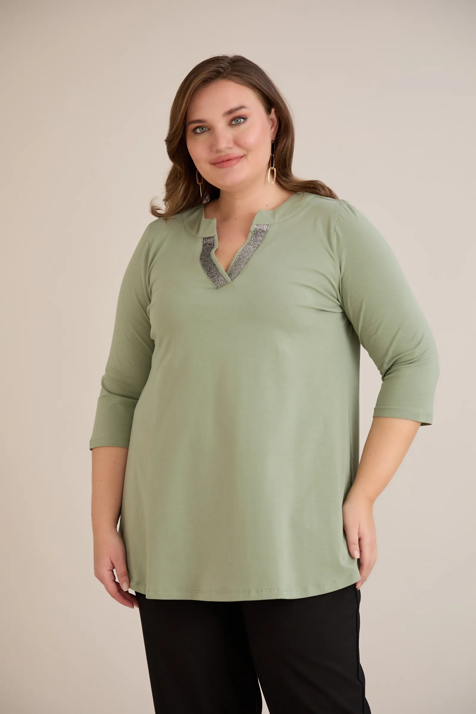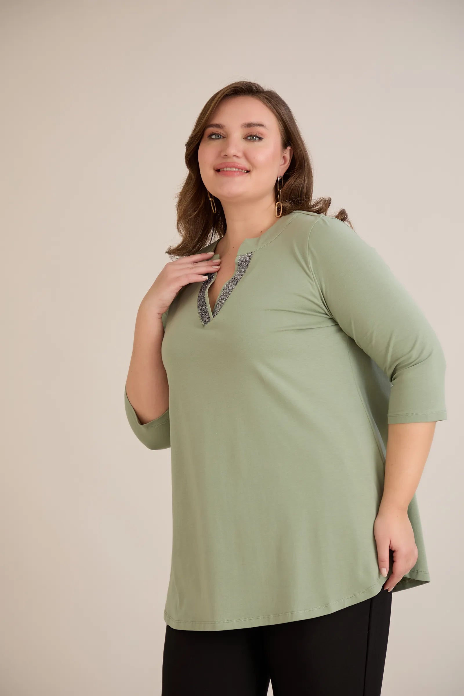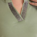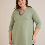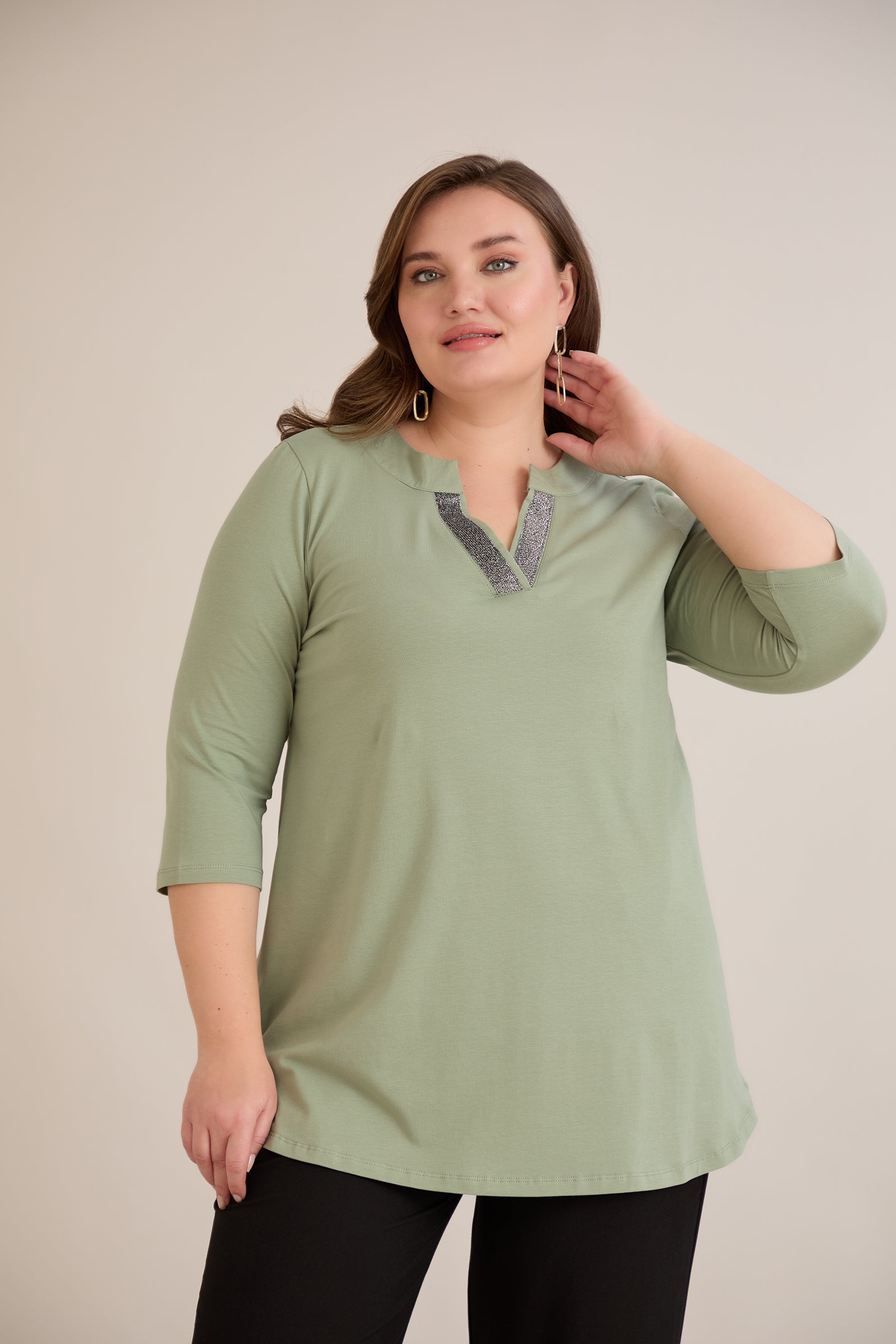 Βαμβακερό τουνίκ με λαμπερό ντεκολτέ σε λαδί χρώμα σε μεγάλα μεγέθη